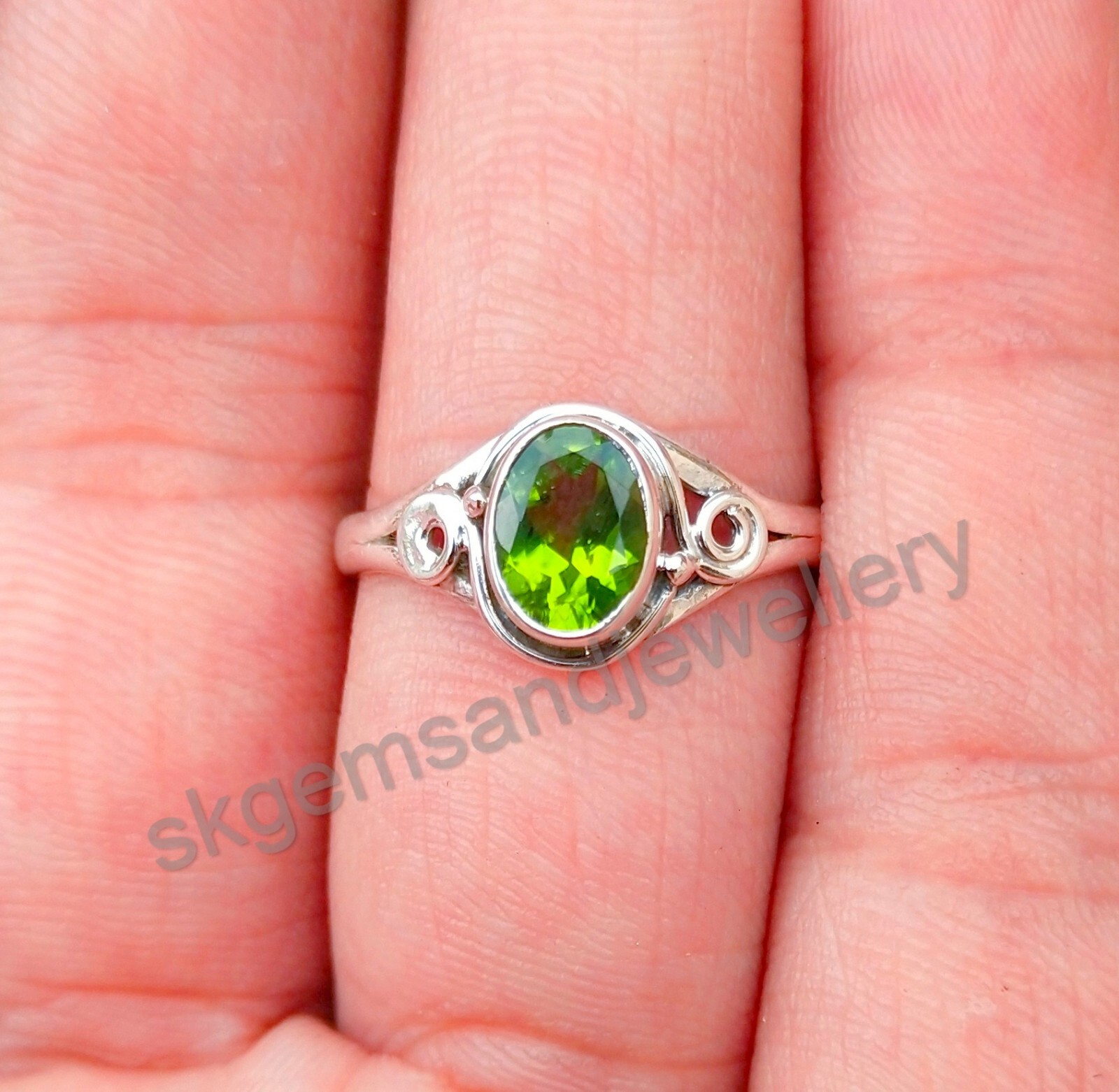 Natural Peridot 925 Sterling Silver Ring August Birthstone Ring Fine Jewelry