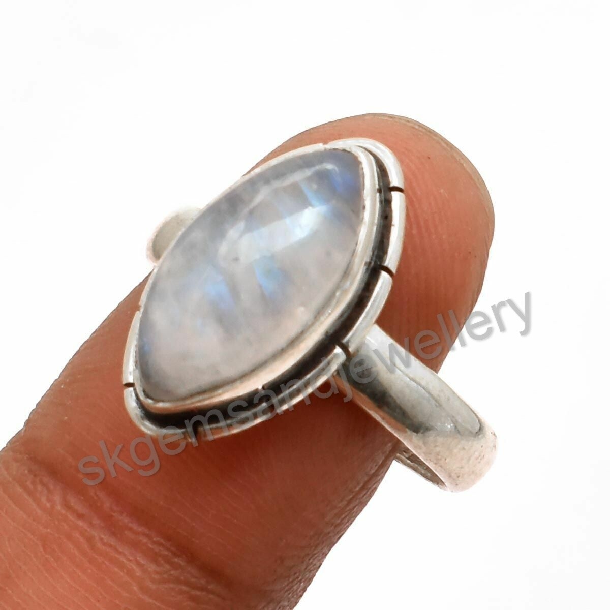 Natural Rainbow Moonstone Ring 925 Sterling Silver Promise Ring For Her