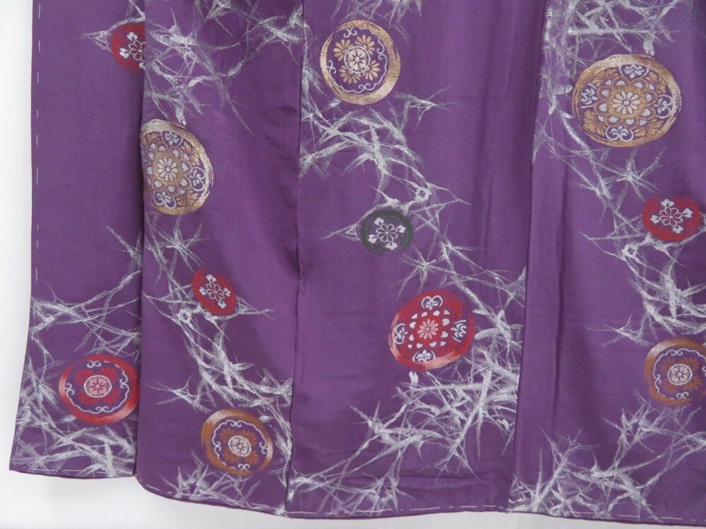 как выглядит 3907T01z880 Vintage Japanese Kimono Silk KOMON Flower Purple фото