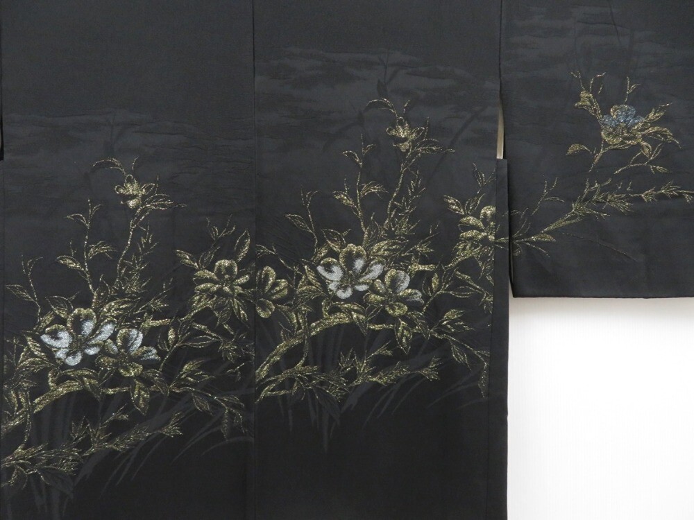 как выглядит 3913T02z540 Vintage Japanese Kimono Silk HAORI Flower Black фото