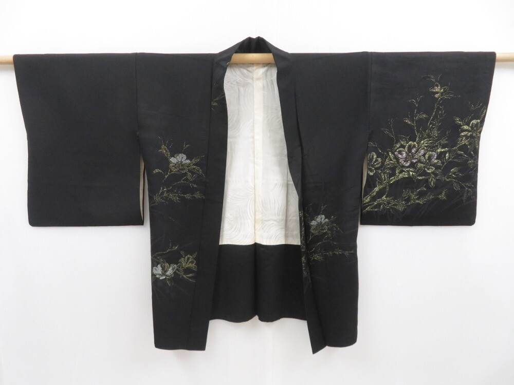 • 3913T02z540 Vintage Japanese Kimono Silk HAORI Flower Black