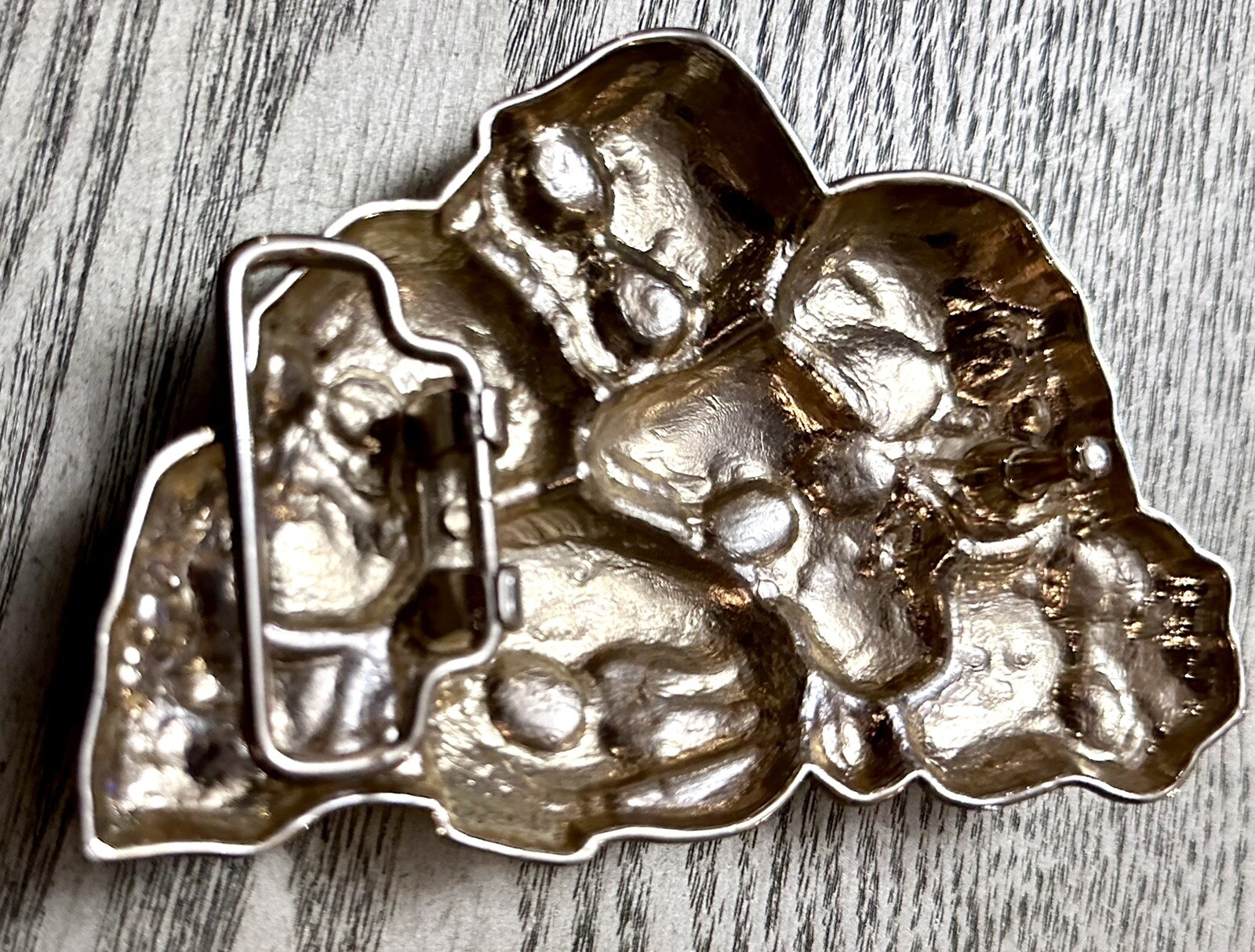 как выглядит Vintage ORIGINAL 1970s Skull Biker Gothic CHROME Belt Buckle W/Inlay Eyes Nose фото