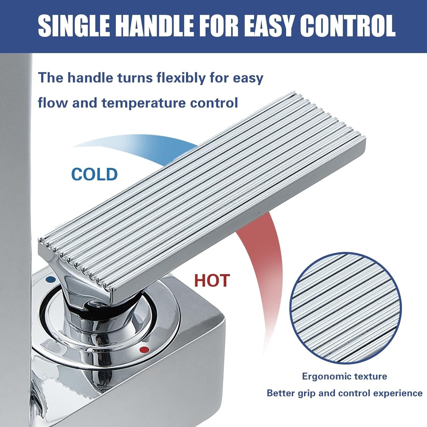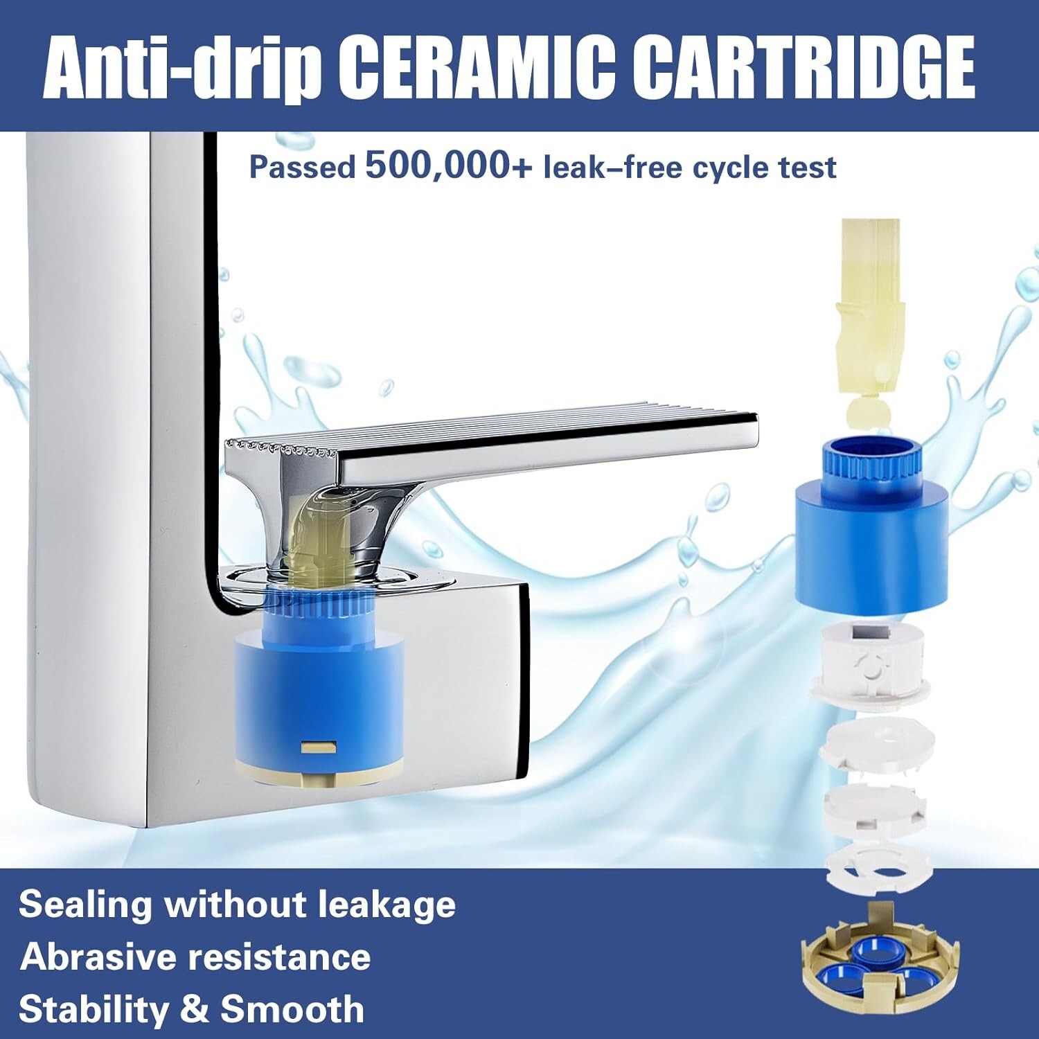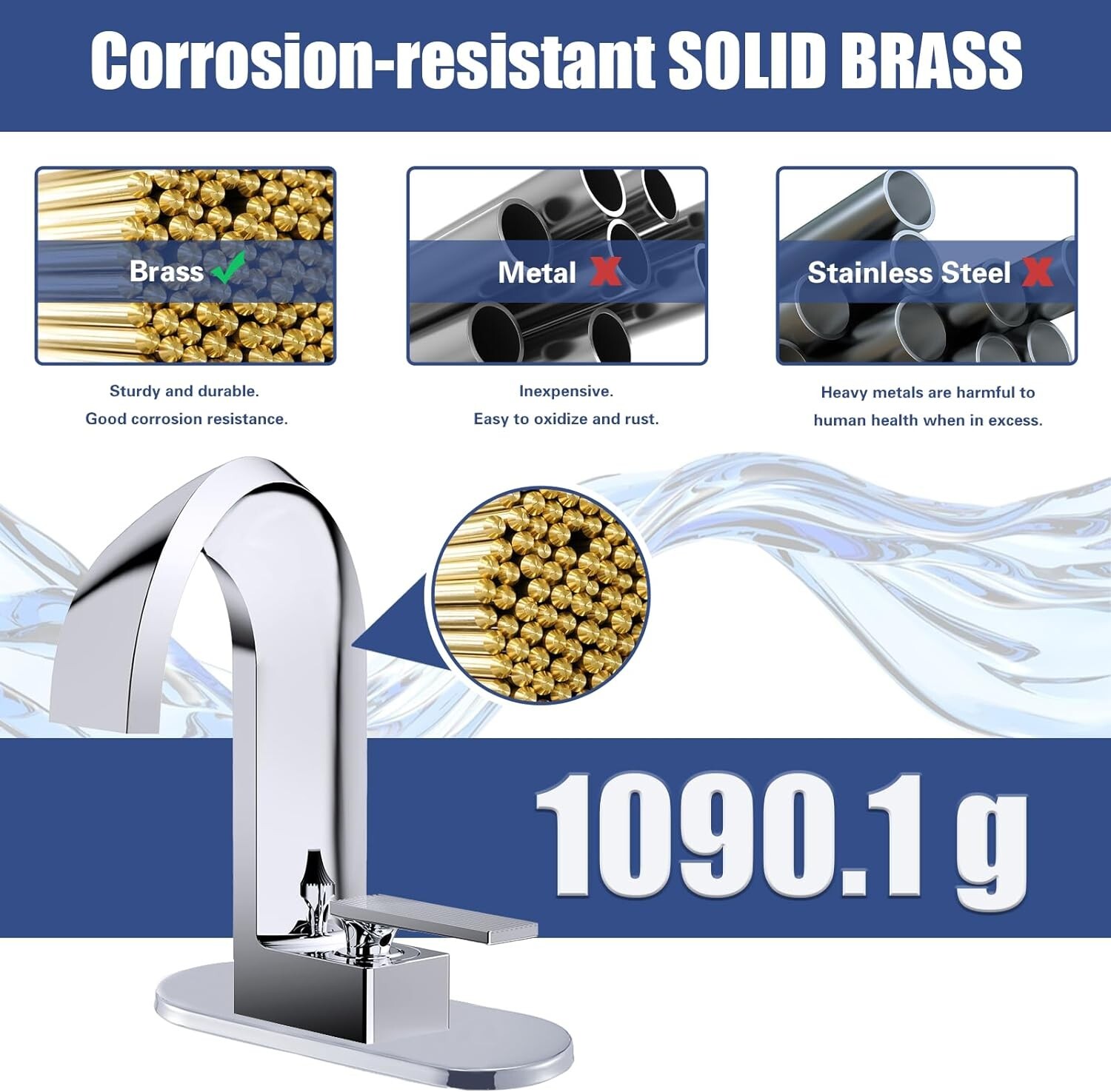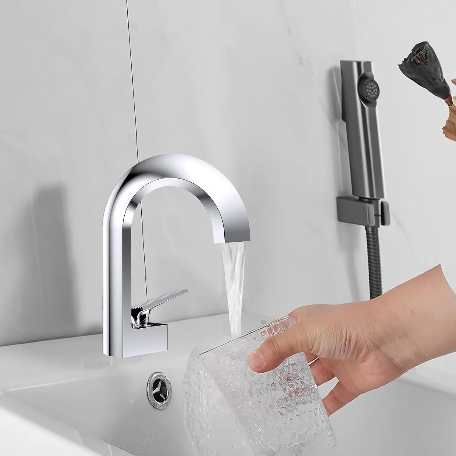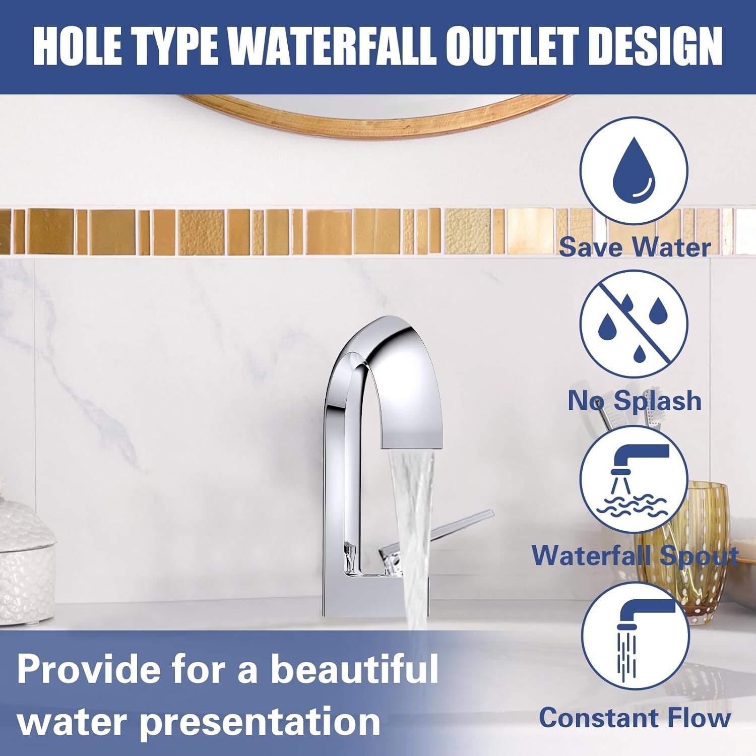 Chrome Bathroom Faucet 1 Hole, Waterfall Faucet Bathroom, Solid Brass, 1 Hole