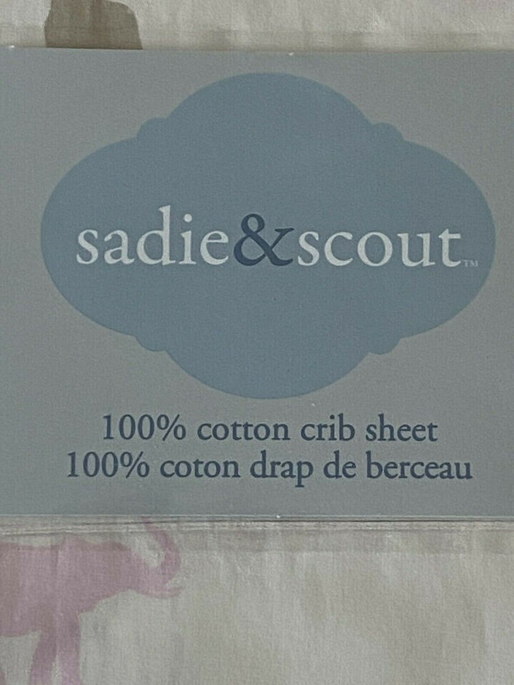 Sadie Scout Safari Crib Sheet pink brown elephants giraffes FREE SHIPPING