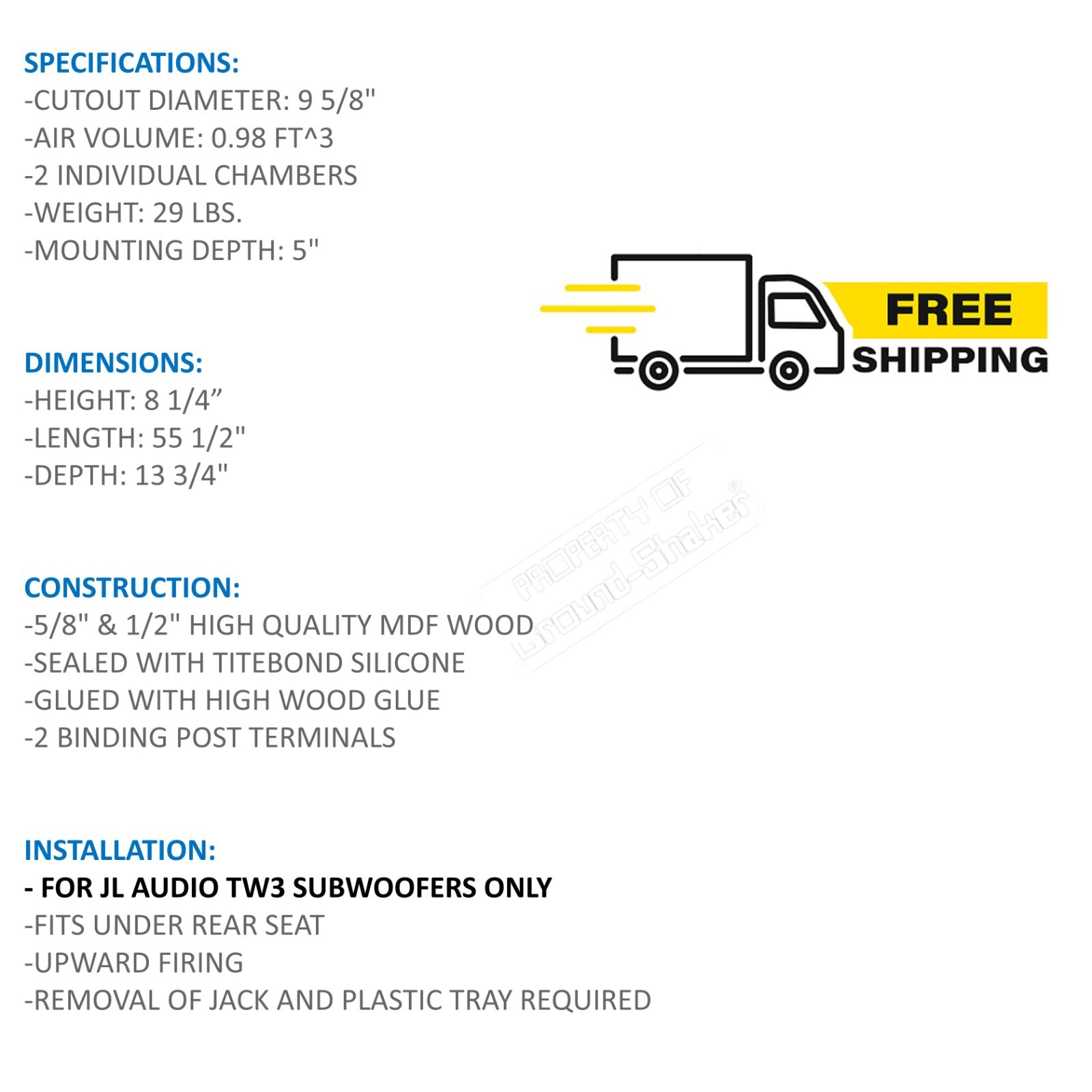2002 - 2018 Dodge Ram Extended Cab 10 Dual Sub Box Subwoofer Enclosure