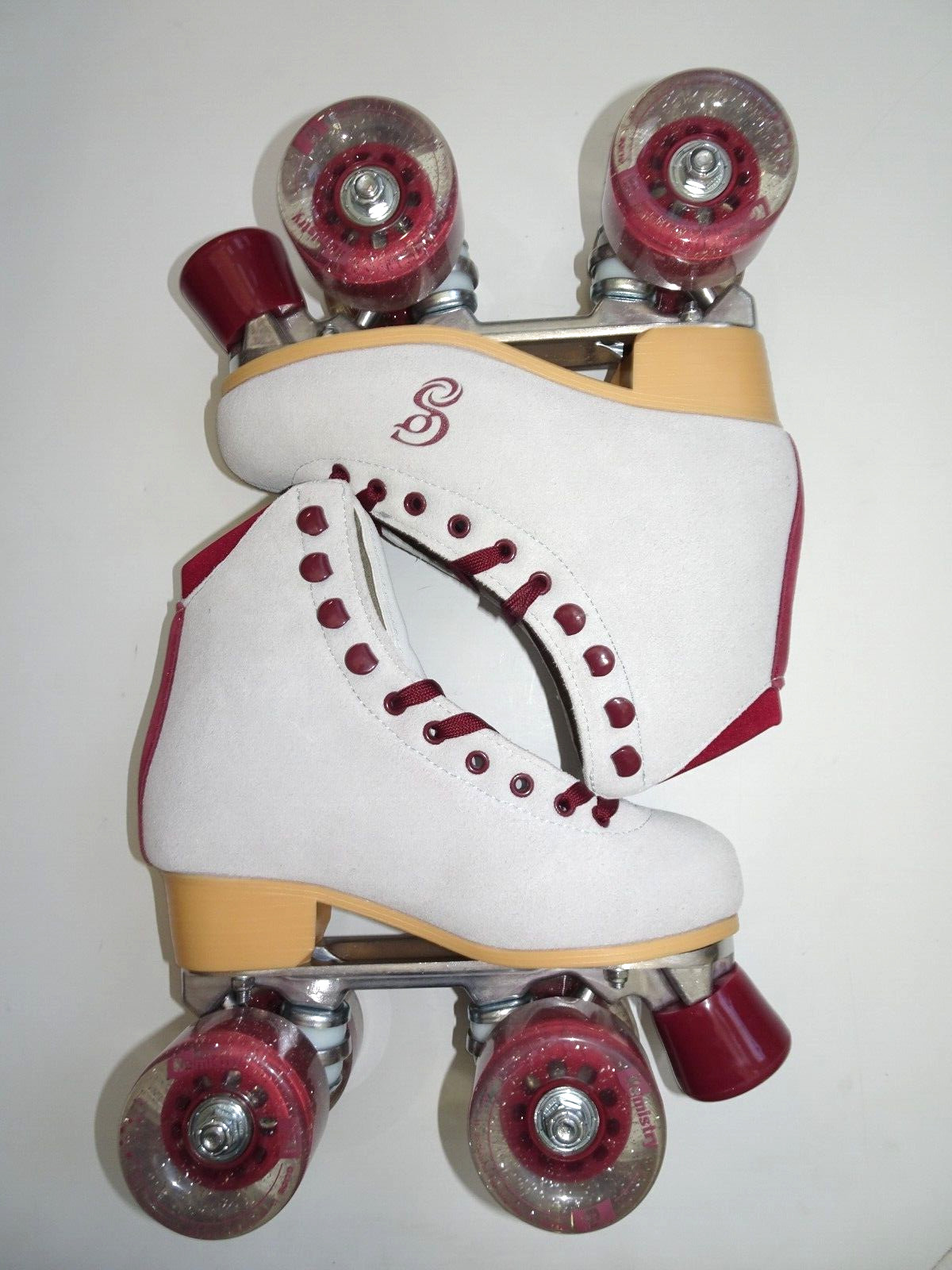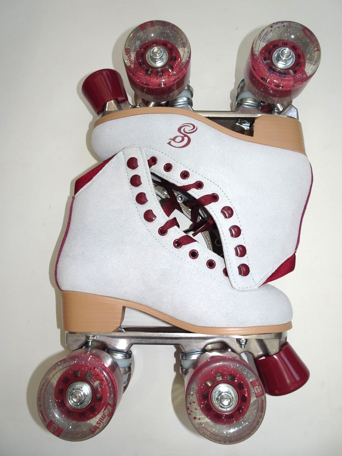 как выглядит Candi Girl CARLIN Brushed Suede Blue Burgundy Quad Roller Skates, Size 3 фото