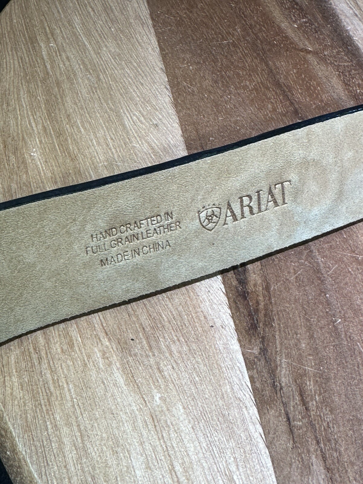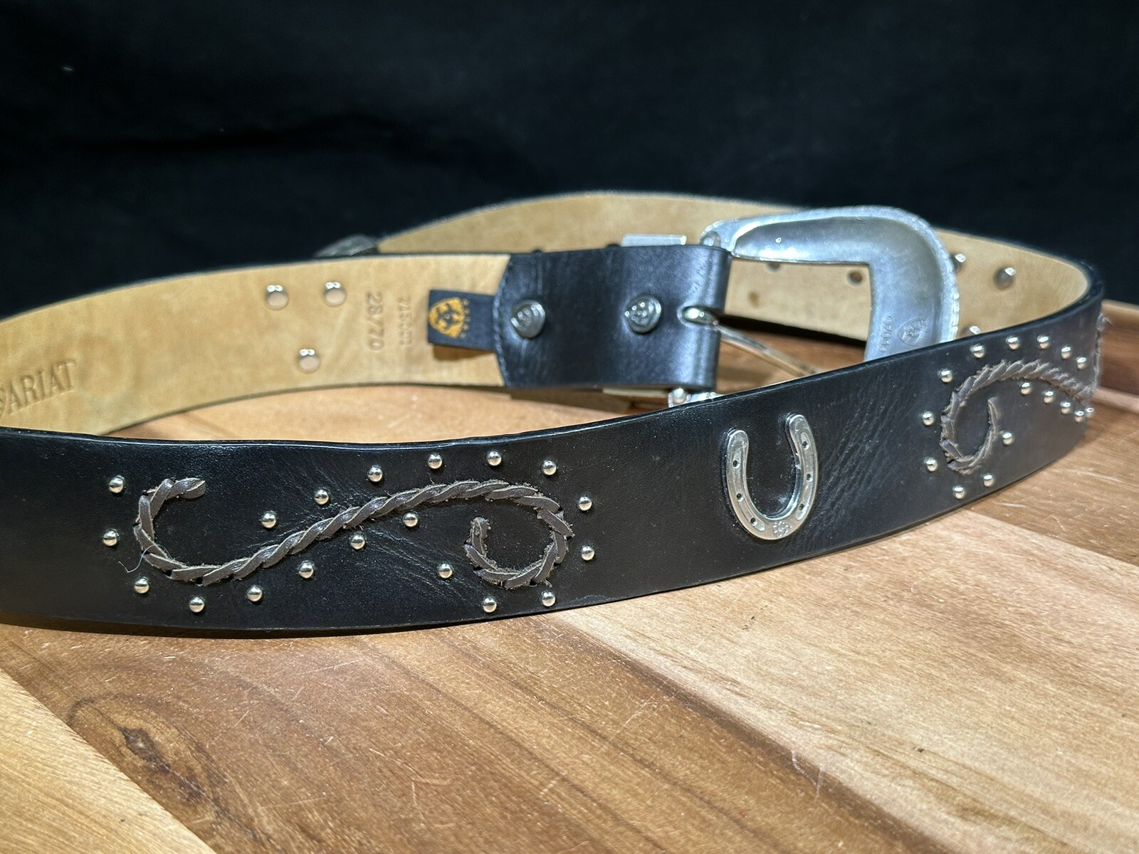 ARIAT WOMENS BLACK LEATHER WESTERN BELT W/ SILVER BUCKLE HORSESHOES 715001-28