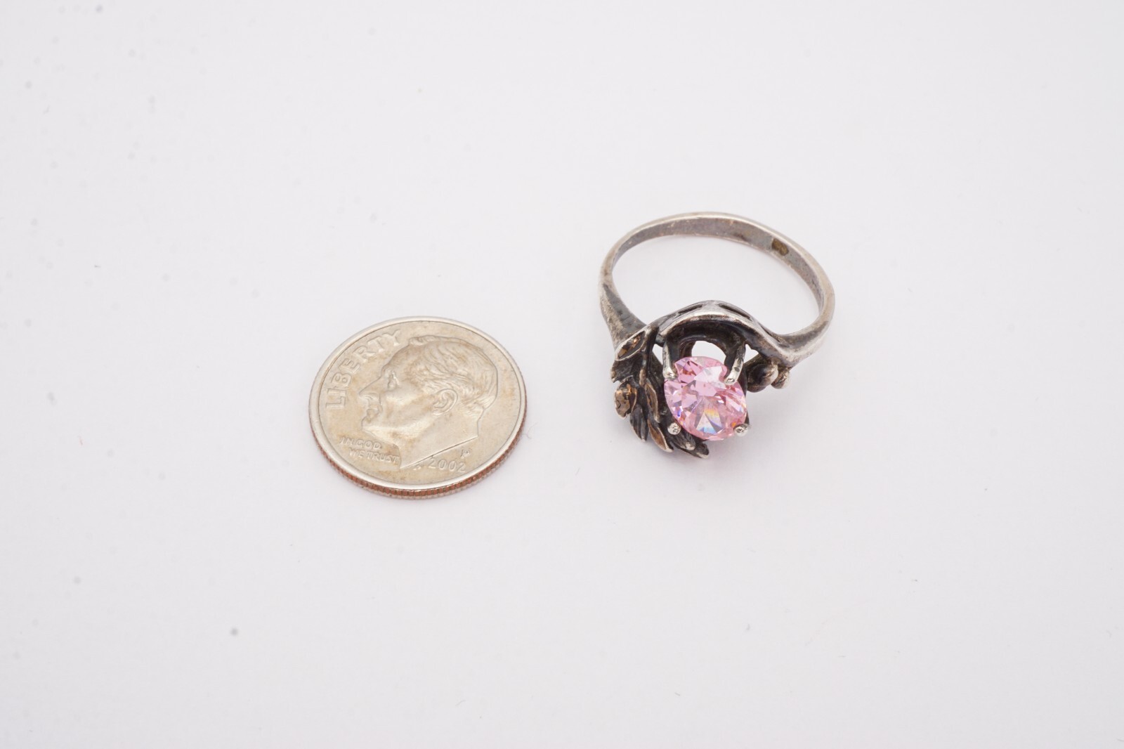 как выглядит Vintage Sterling Silver 925 Pink Cubic Zirconia Ring Size 7.75 фото