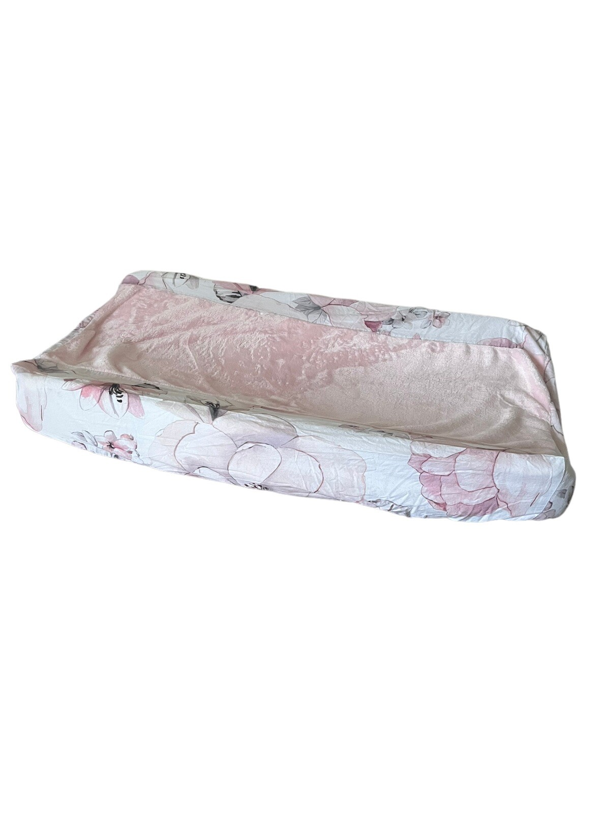 Lambs Ivy Signature Botanical Baby Pink/Gray Floral Minky Changing Pad Cover