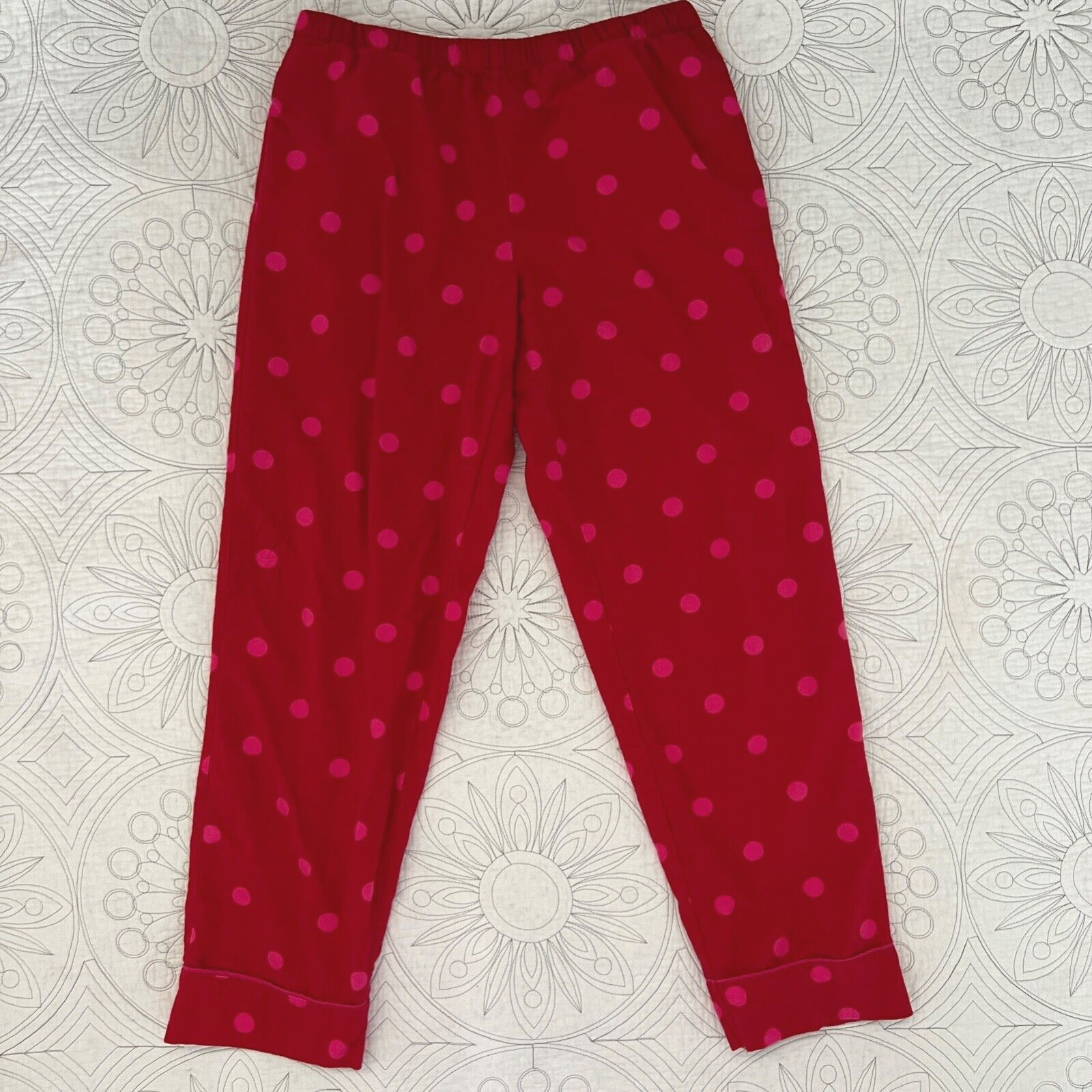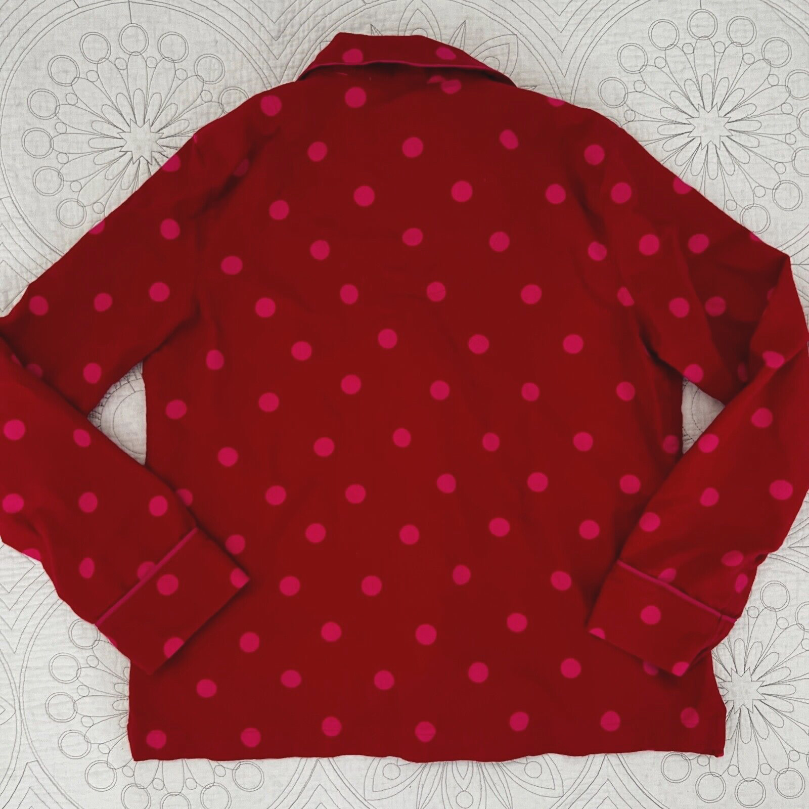 как выглядит KATE SPADE Red/Pink Polka Dot Flannel Pajamas SMALL PJ Set фото