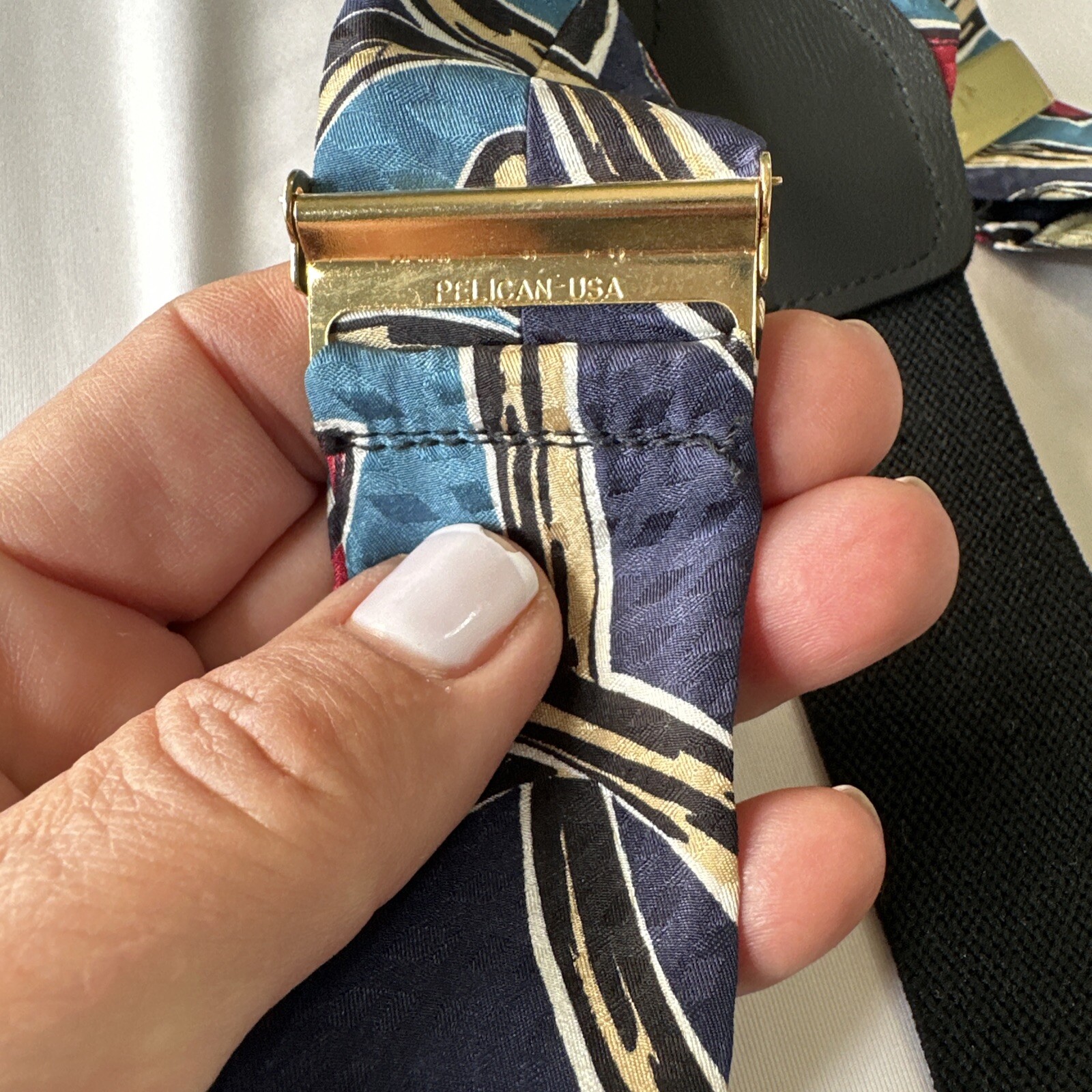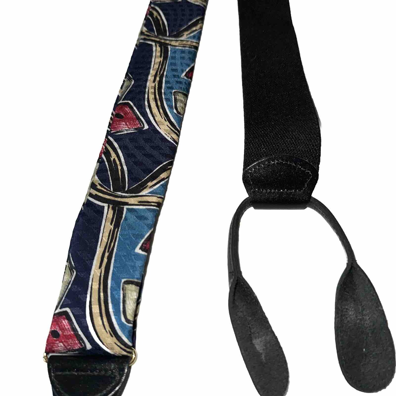 Pelican USA Button Suspenders Silk Pattern Brass Adjusters Leather Ends