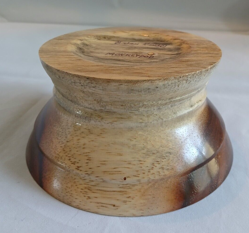 как выглядит TURNED MONKEY POD WOOD FOOTED BOWL, BEAUTIFUL GRAIN PATTERN, HANDMADE, OOAK фото