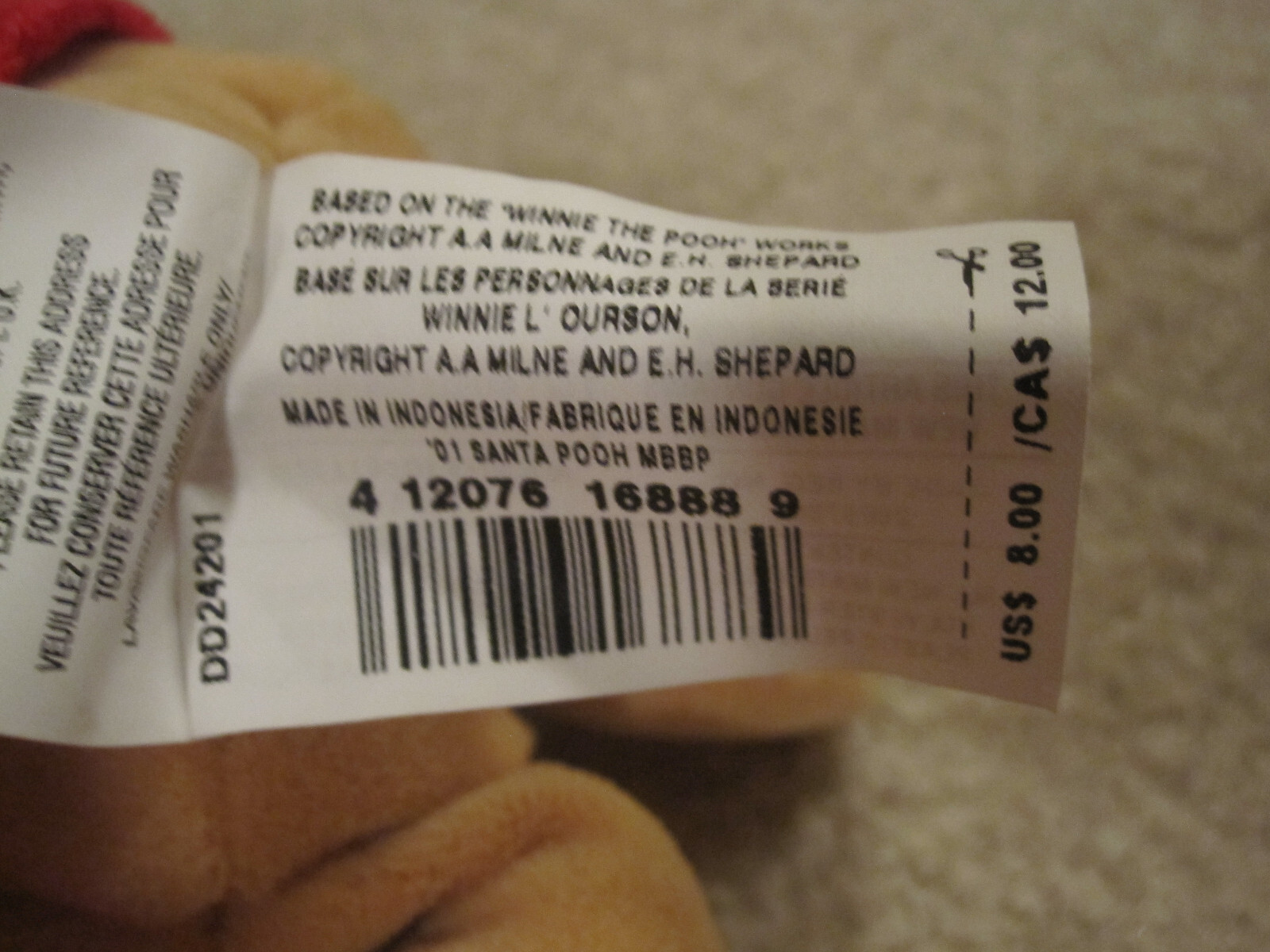 как выглядит Disney Santa Pooh mini bean bag 8 inch plush new with tags 2001 set of 2 фото