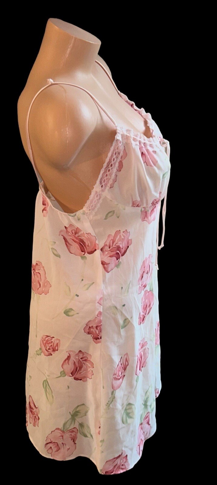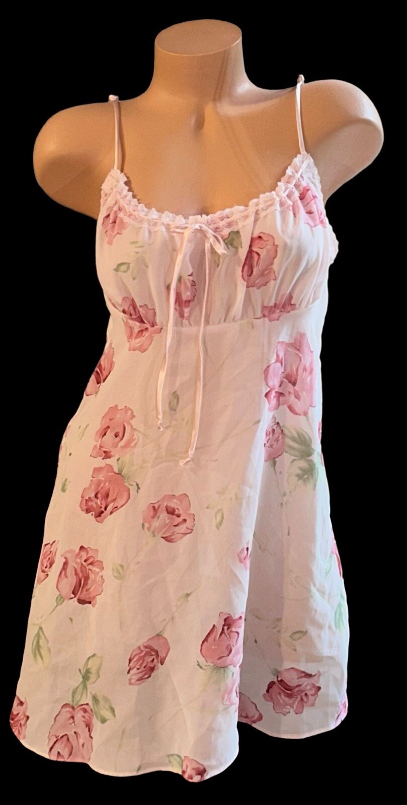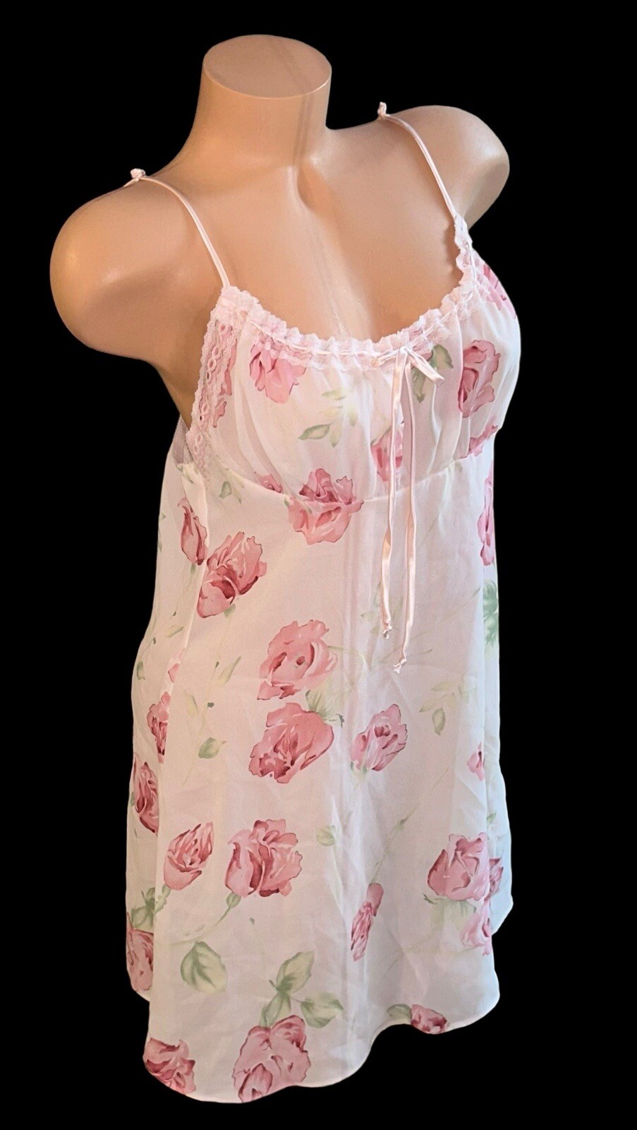 Cinema Etoile Floral Silky Sheer Satin Straps Nightie Nightgown Women s M