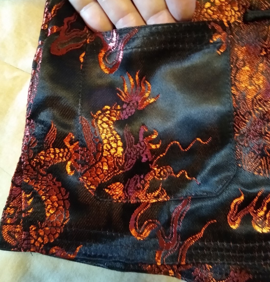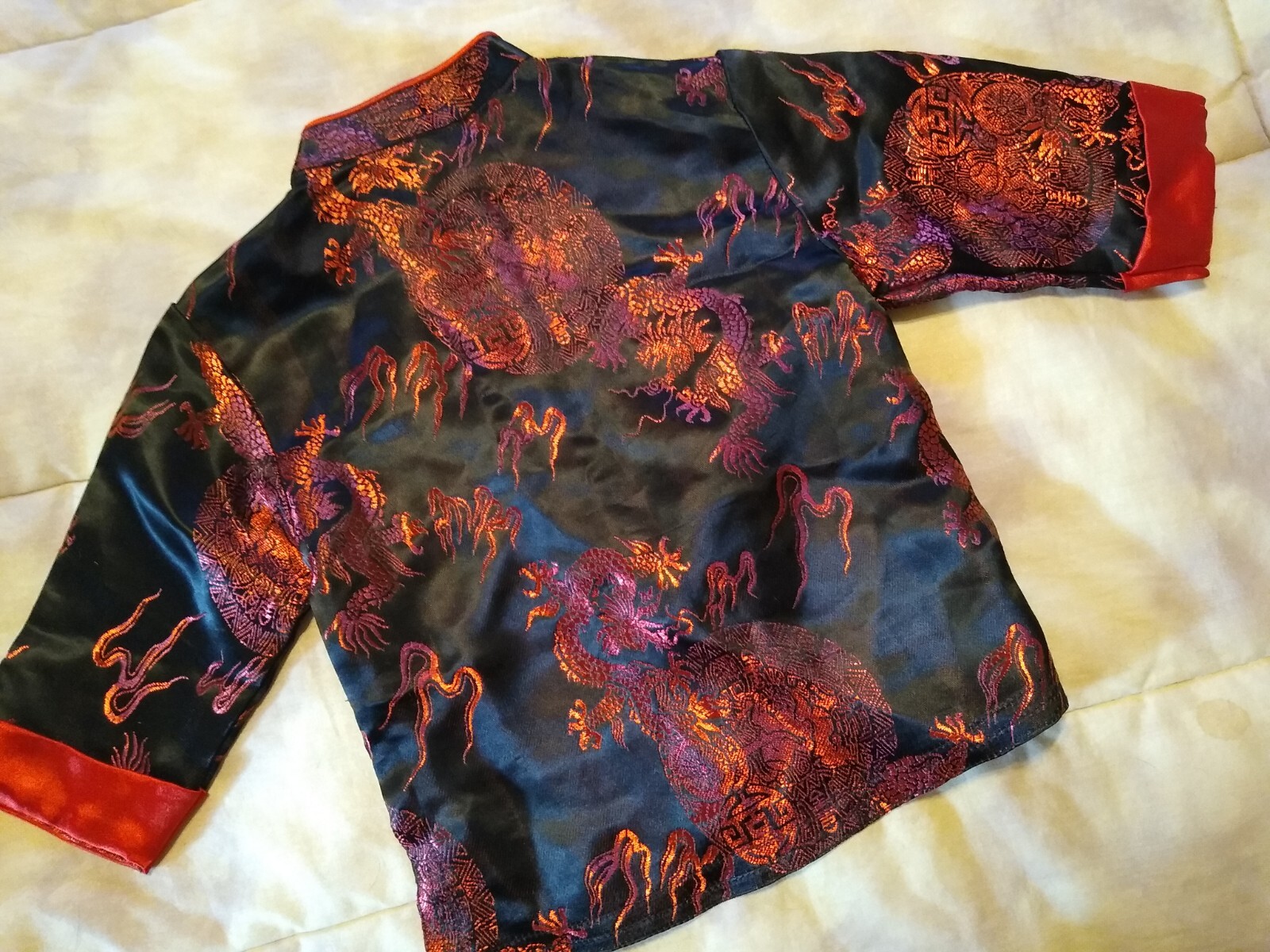 как выглядит MiMi Jacket Asian Size 3 Black Red Dragon Mandarin Collar Pockets Kids фото