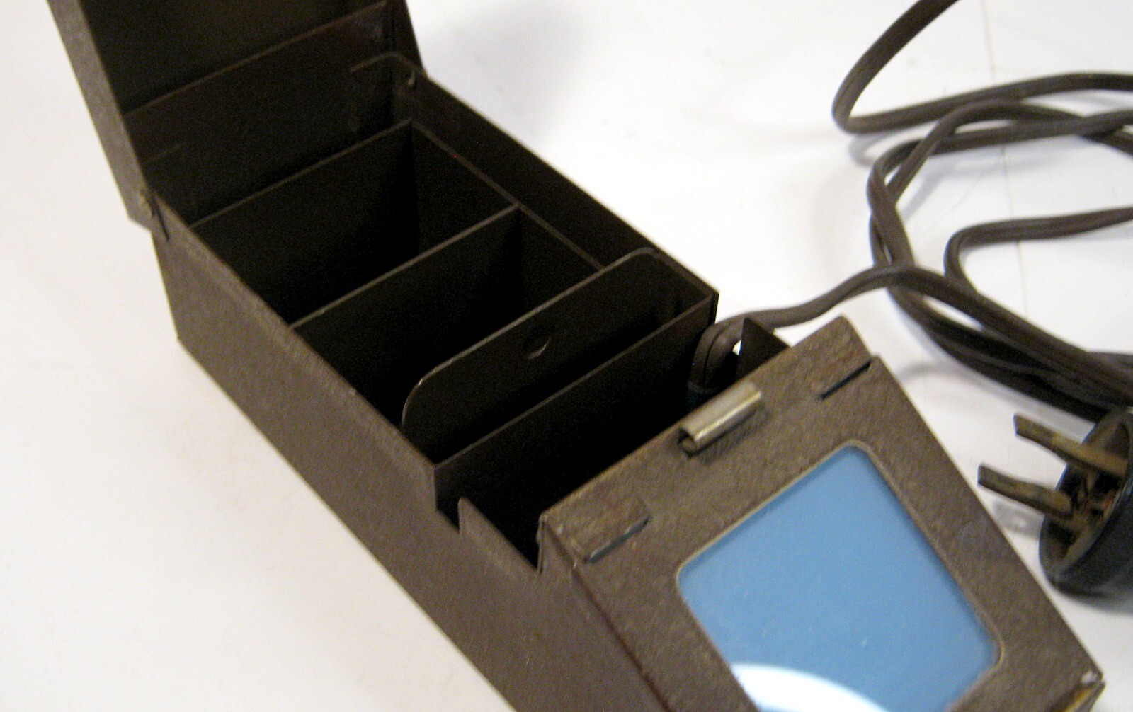 как выглядит Vintage FODECO Model No 105 Lighted Metal Slide Viewer - Works фото
