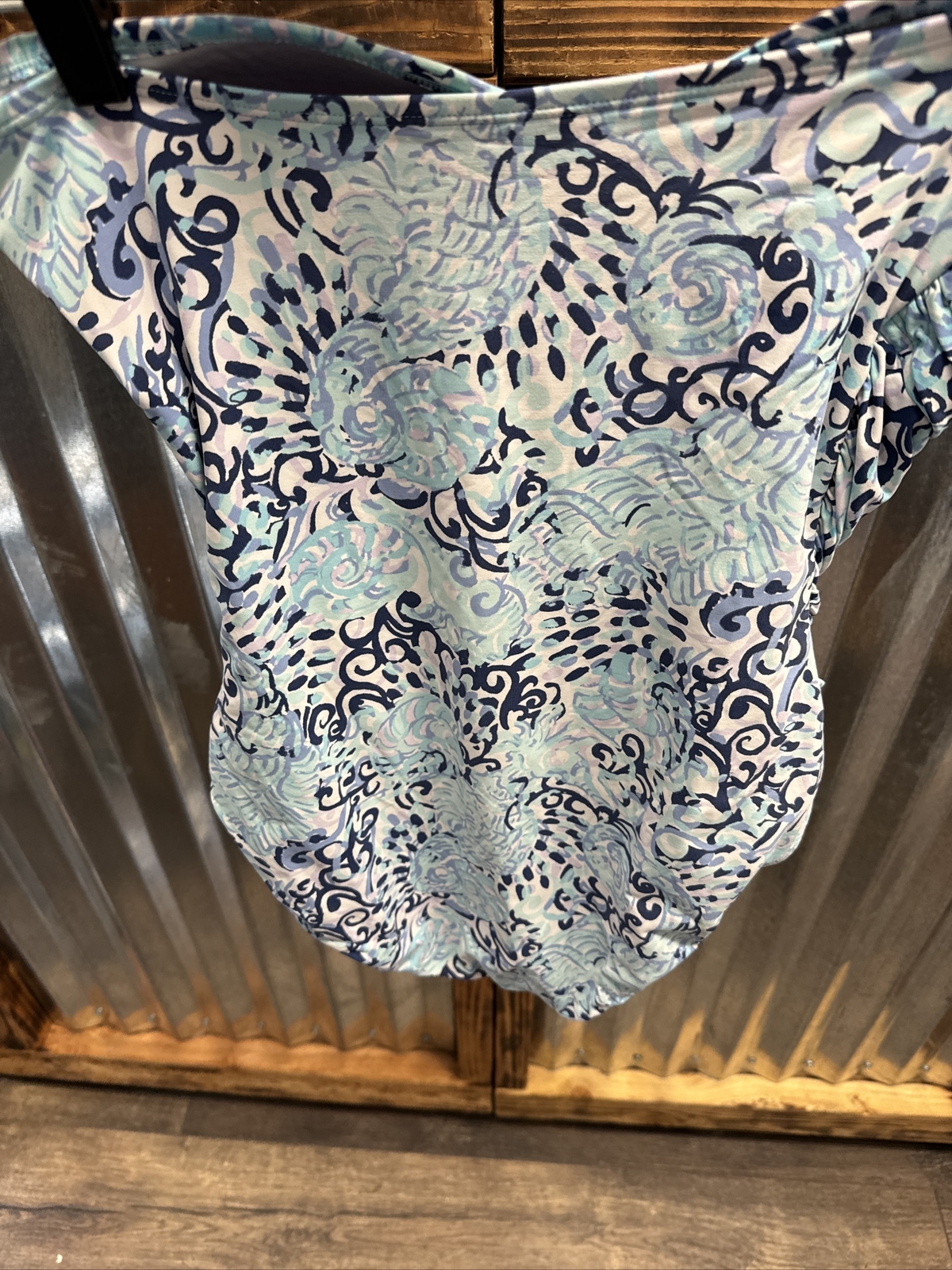 как выглядит Lilly Pulitzer Flamenco One Piece Swimsuit Light Aqua Spritz Size 12 New фото