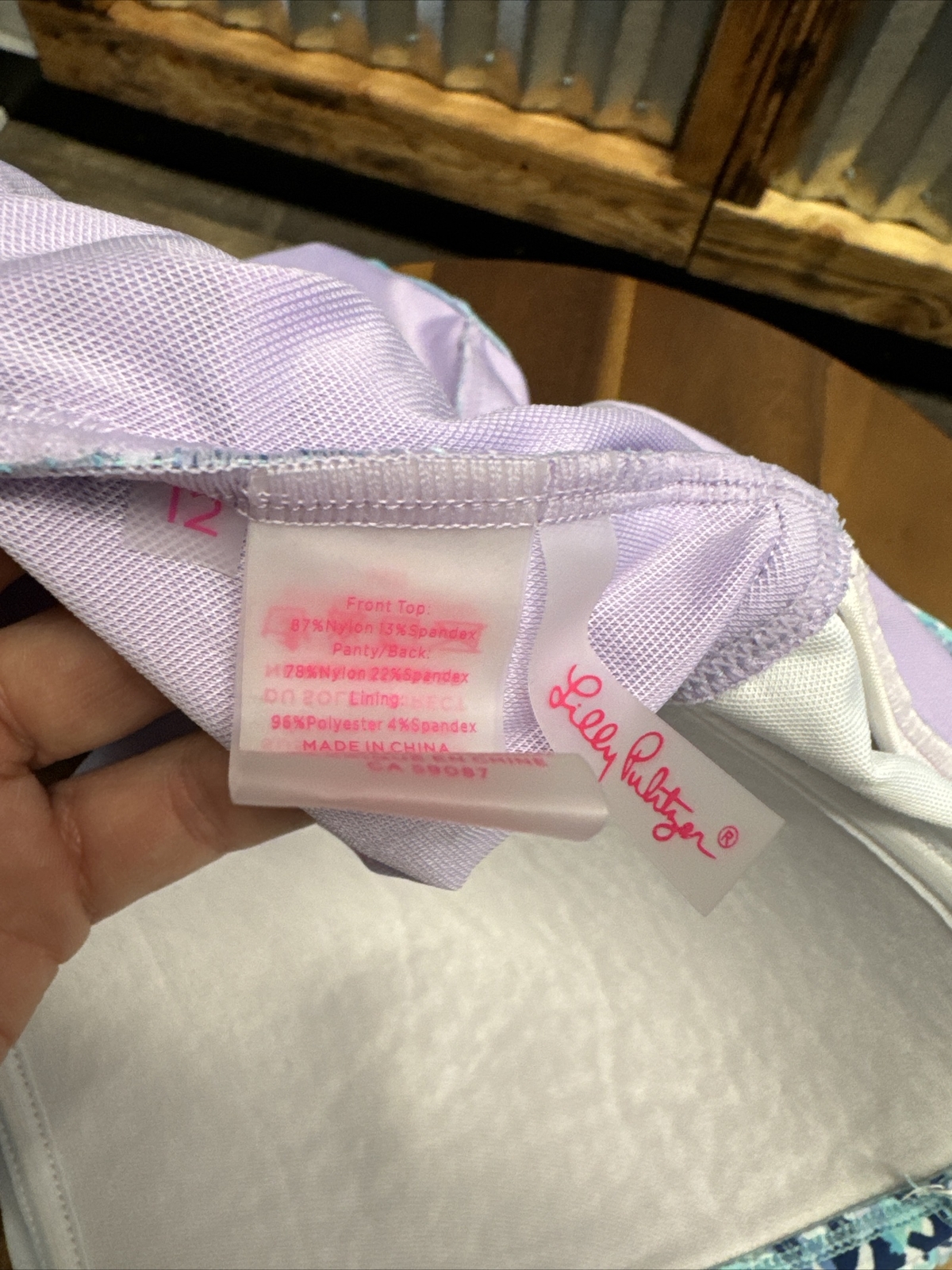 Lilly Pulitzer Flamenco One Piece Swimsuit Light Aqua Spritz Size 12 New