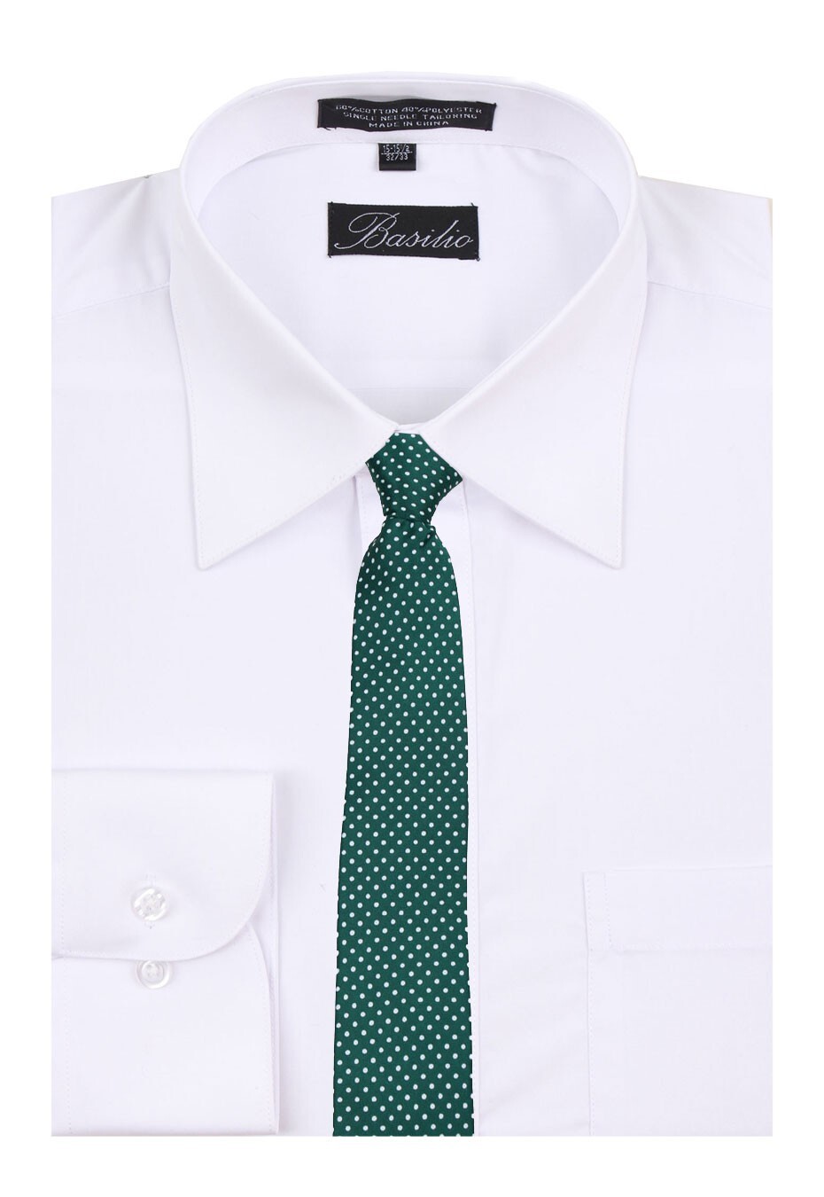 Men's Hunter Green and White Dot Necktie Schools Business Formal - NWT