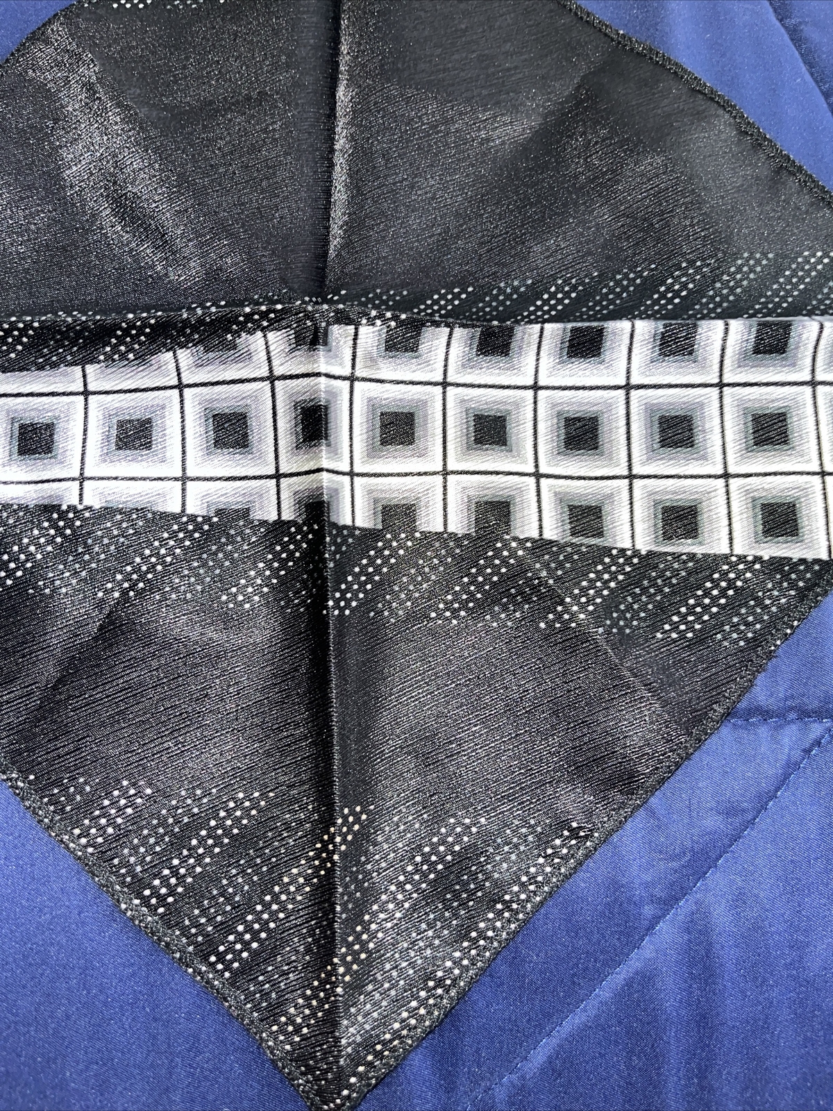 как выглядит BLACK BLUE SILVER POCKET SQUARE HANDKERCHIEF 9.5 x 9.5 inch фото