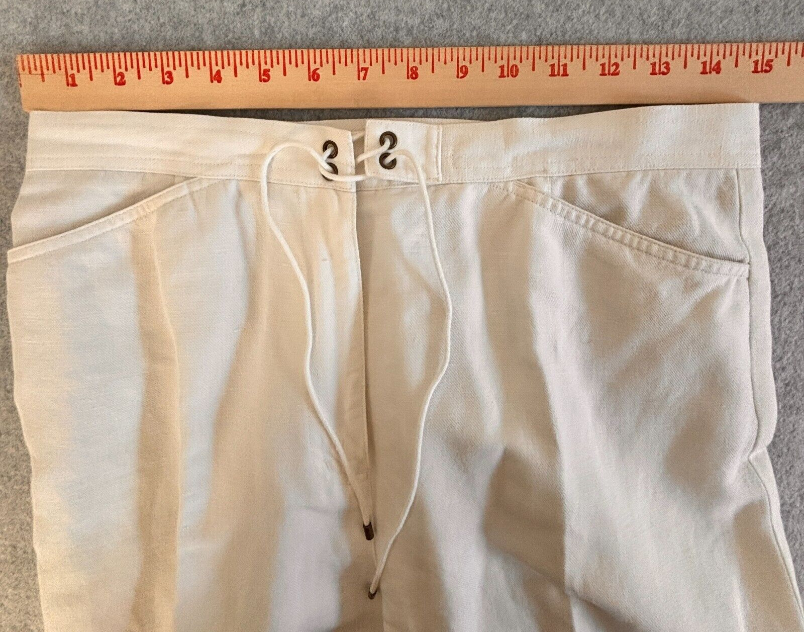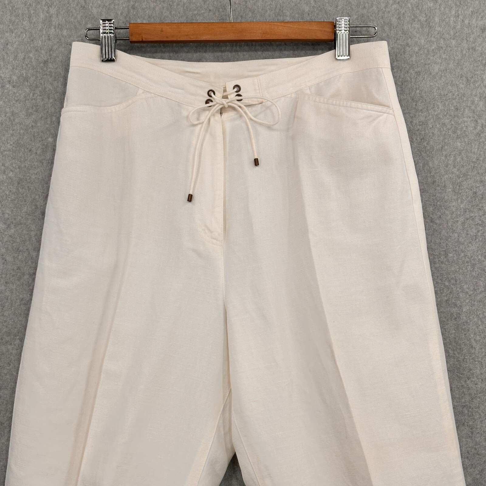 как выглядит Talbots Pants Women 10 White Ankle Drawstring Irish Linen Blend 30x25 фото