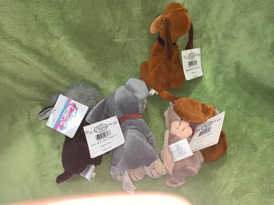 как выглядит The Disney Store Mini Bean Bag Lady and the Tramp Trusty Jock. Lot of 4 фото