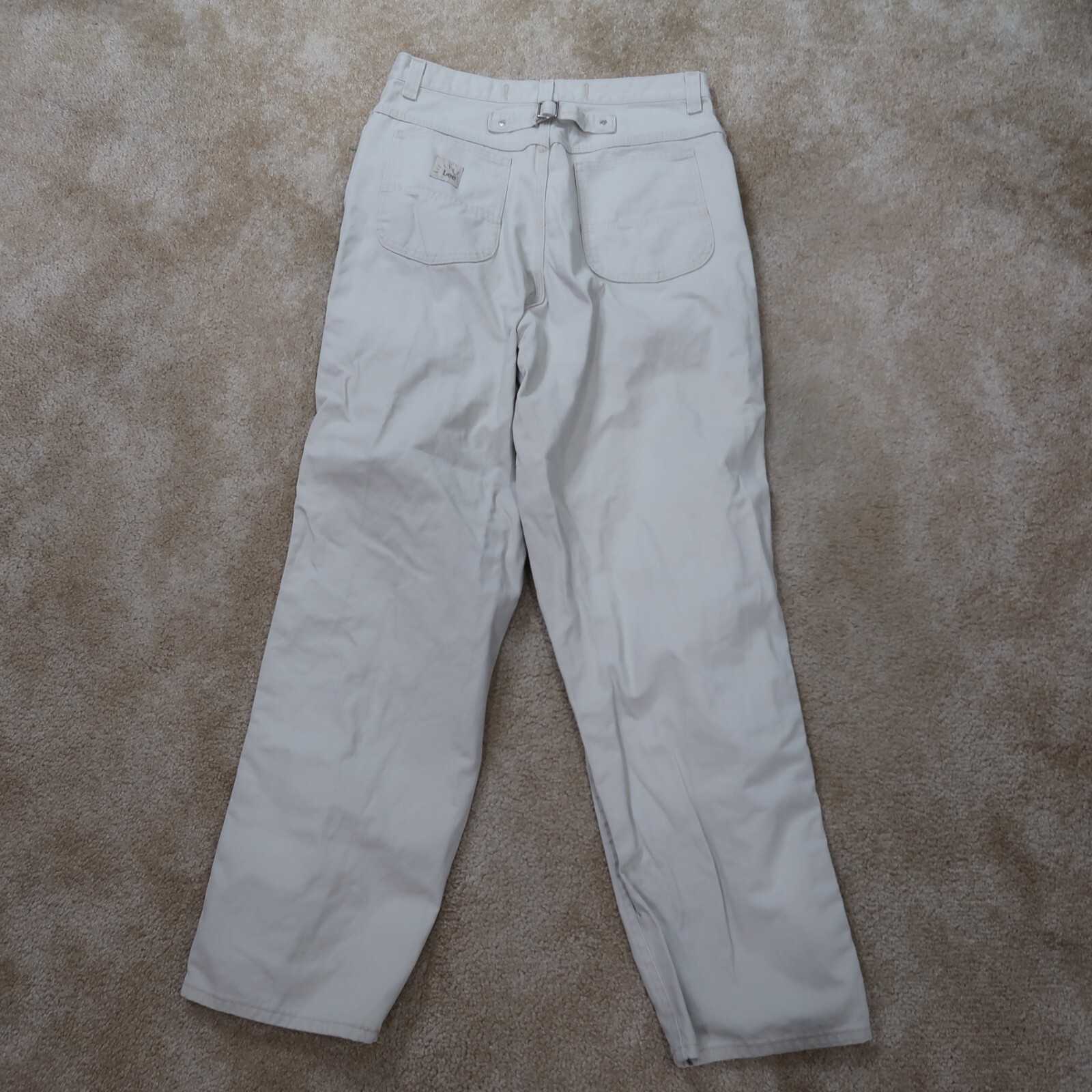 как выглядит Vintage Lee Riveted High Rise Straight Leg Pants Womens 16L Beige Buckle Back фото