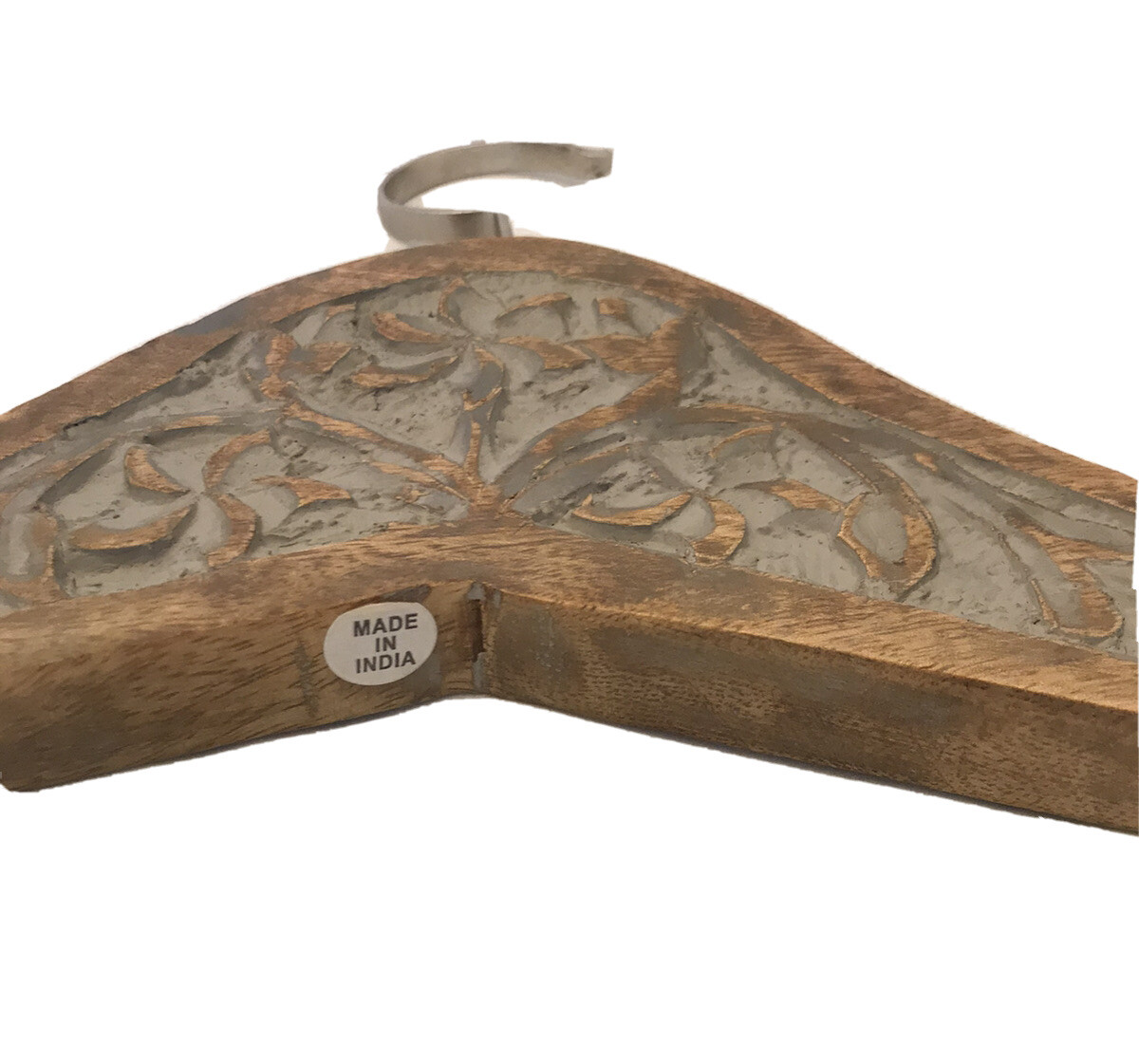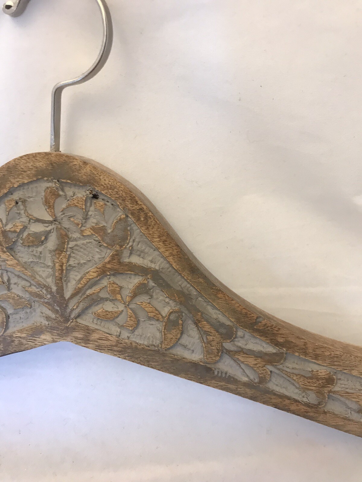 как выглядит Handcarved Wooden Floral Embossed Clothing Hanger In Natural Brown фото