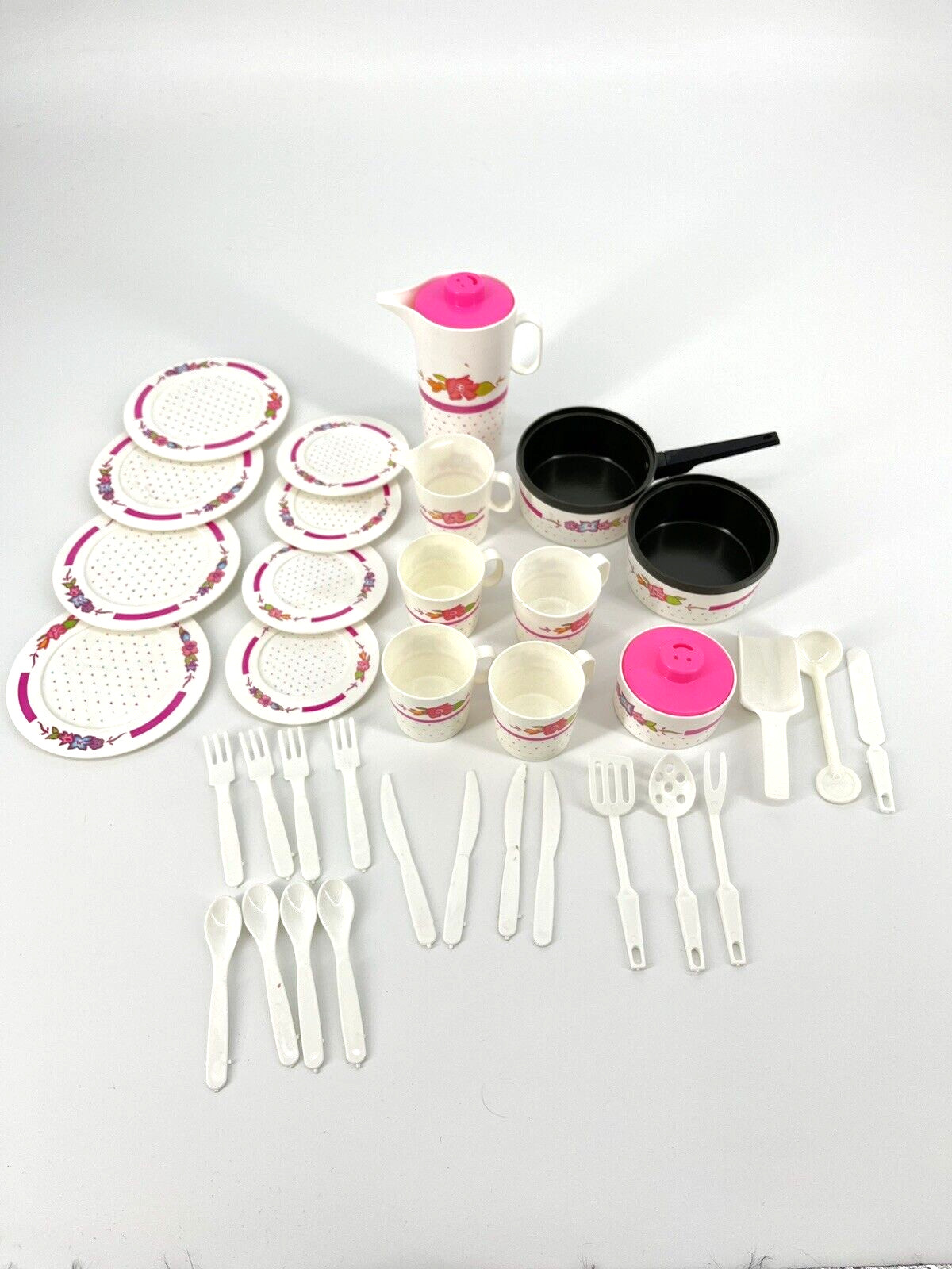 как выглядит Vintage Chilton Globe Play Plastic Dishes Lot 37 Pieces Plates Pitcher Cups Pots фото