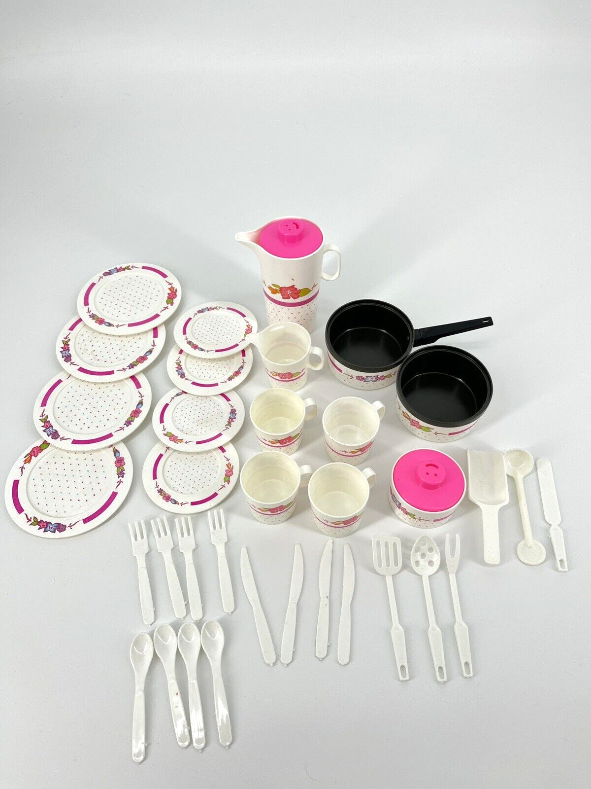 Vintage Chilton Globe Play Plastic Dishes Lot 37 Pieces Plates Pitcher Cups Pots