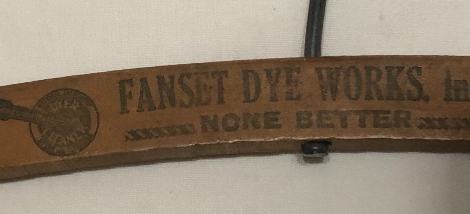 VINTAGE WOOD HANGER - FANSET DYE WORKS, INC., GLENDALE BLVD. LOS ANGELES, CA