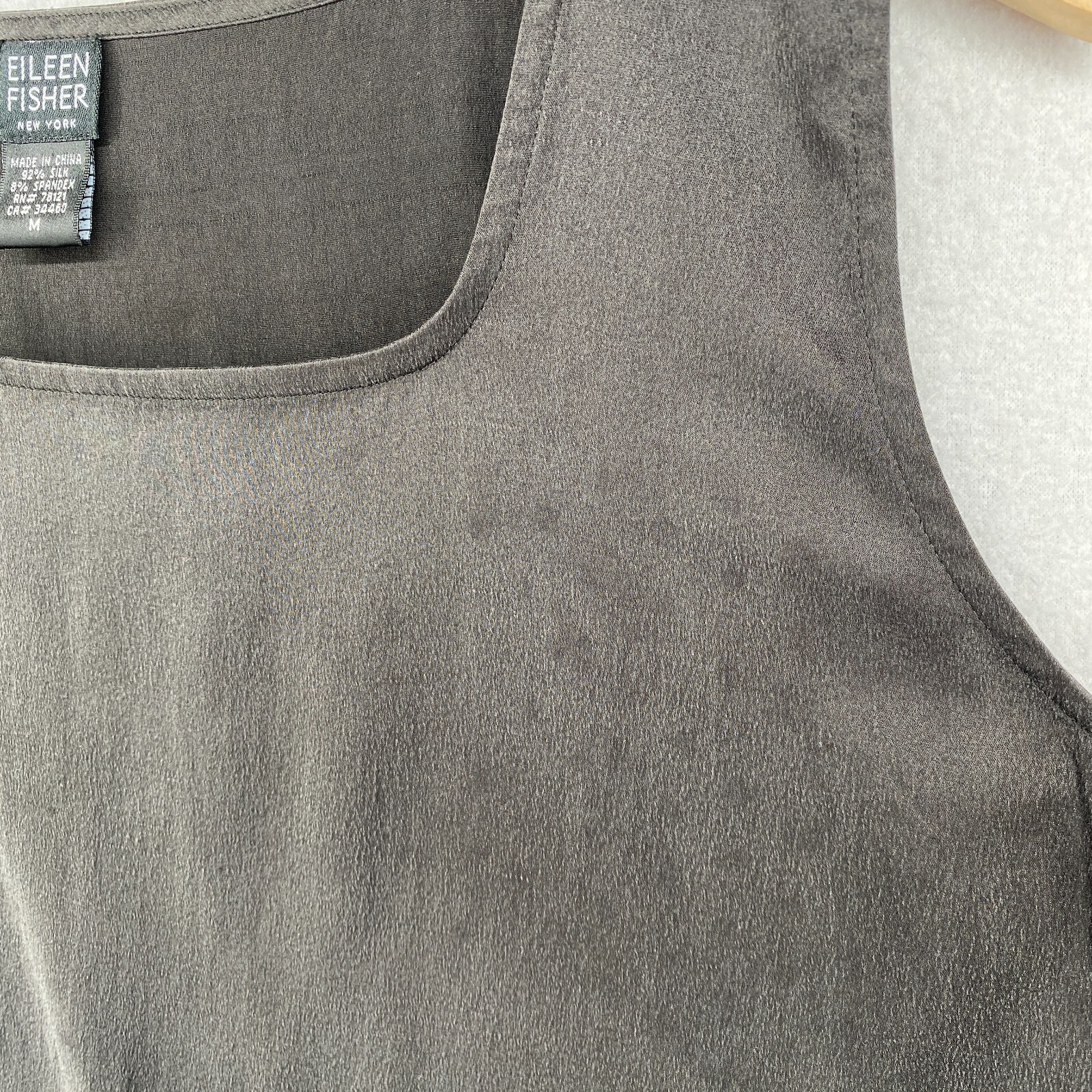 как выглядит EILEEN FISHER Tank Top M Sandwashed Silk Satin Square Neck Sleeveless Gray фото