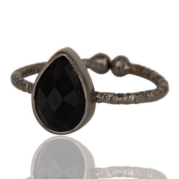 Natural Black Onyx Gemstone Ring 925 Silver Black Rhodium Ring Jewelry