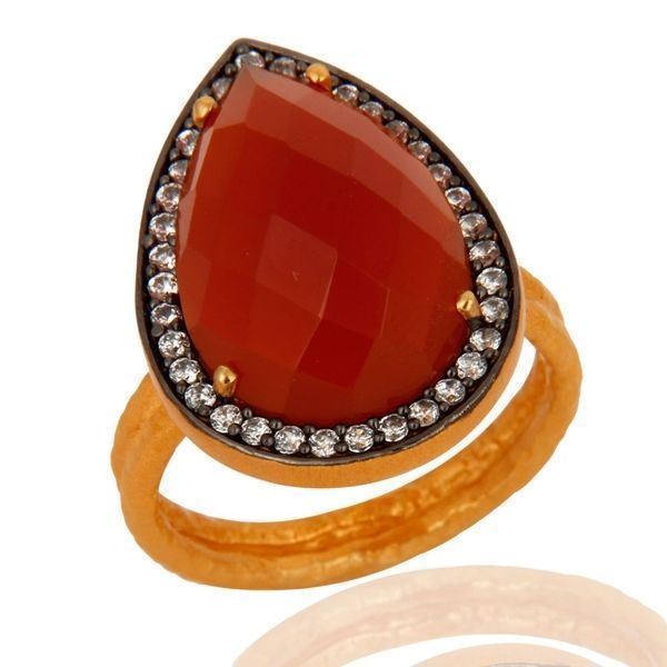 как выглядит Natural Red Onyx Zircon Gemstone Sterling Silver Gold Plated Ring Jewelry фото