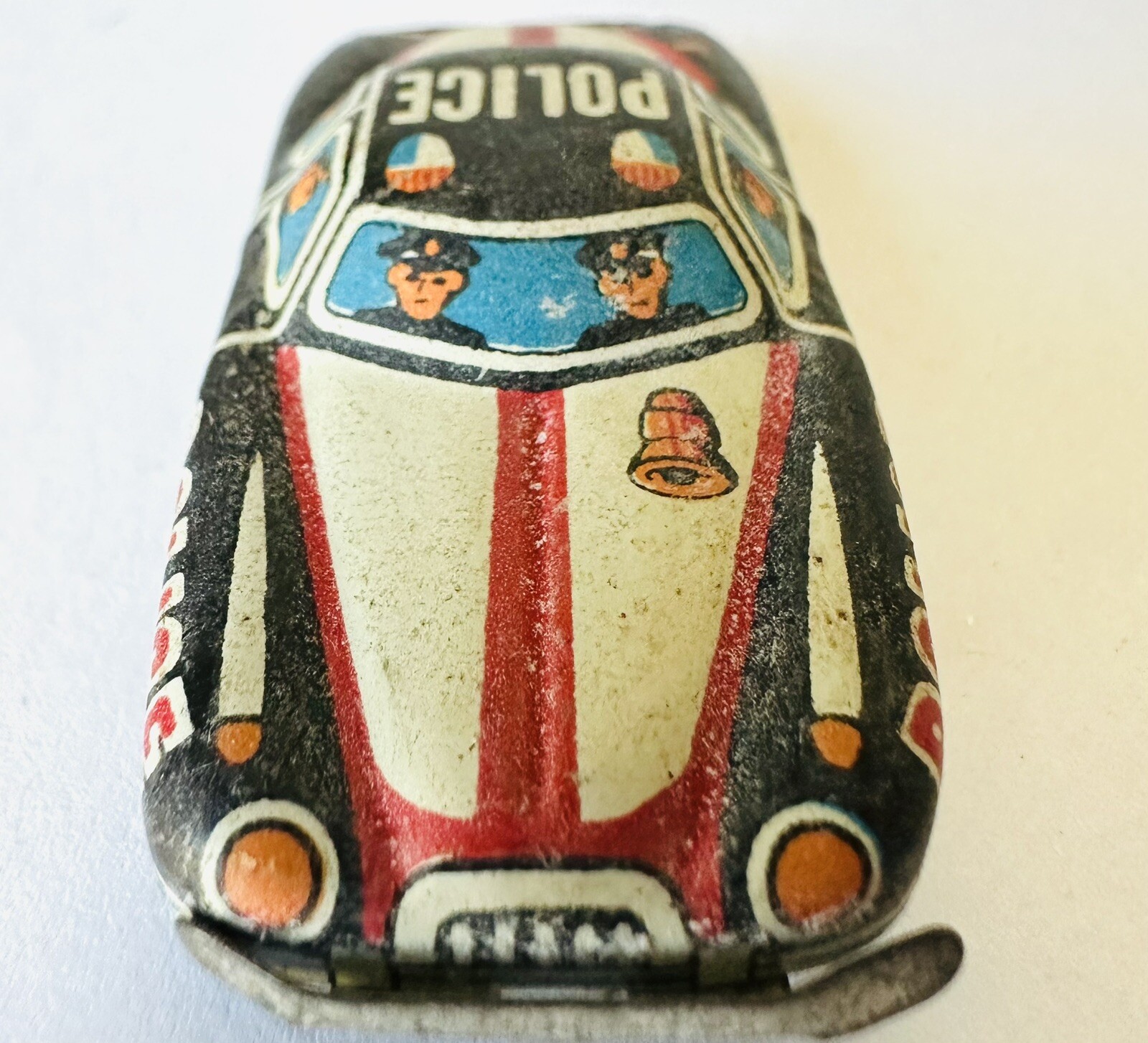 1950s Old Tiny Tin Litho Police Emergency Car Rolling Patrol Vehicle Toy Japan