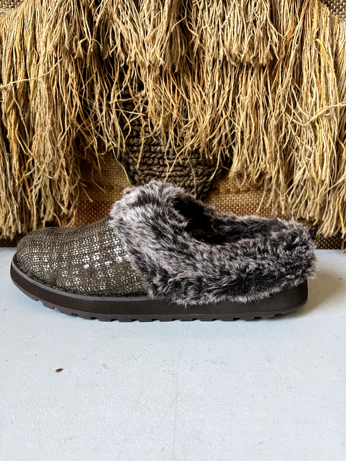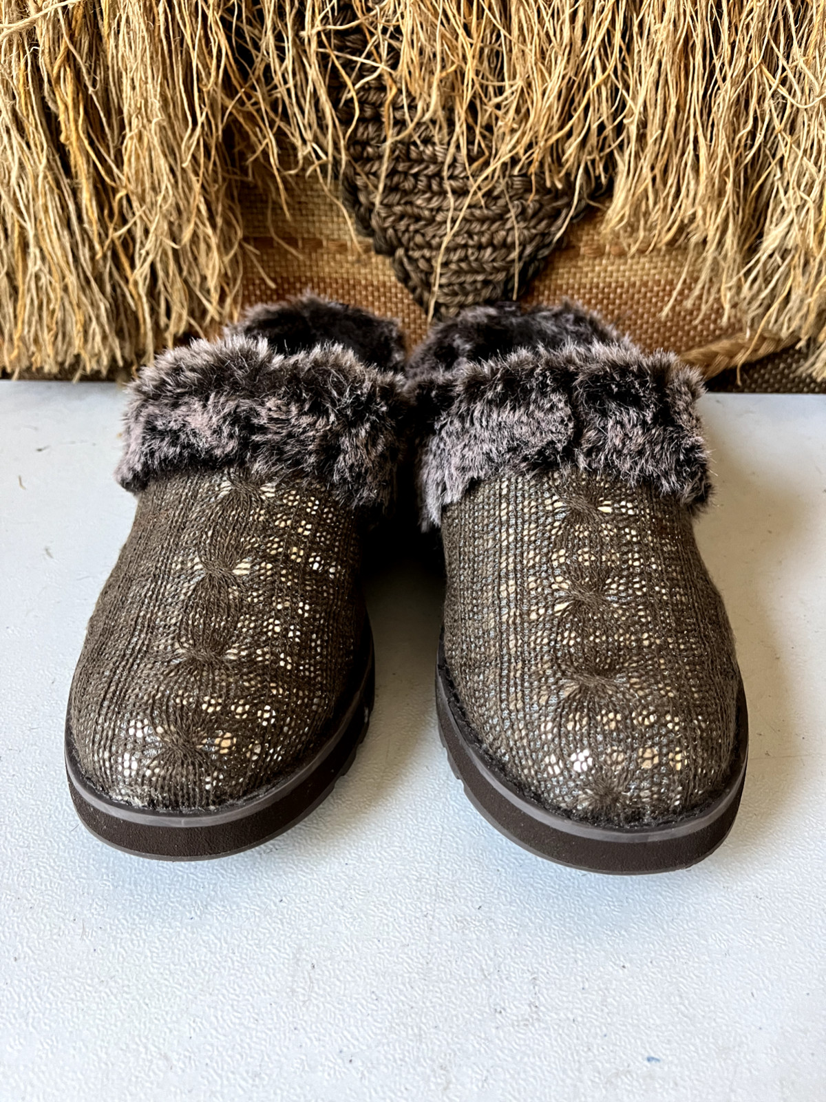 Skechers Brown 47858 Fuzzy Chunky Mules Shindigs Shoes Size 7.5