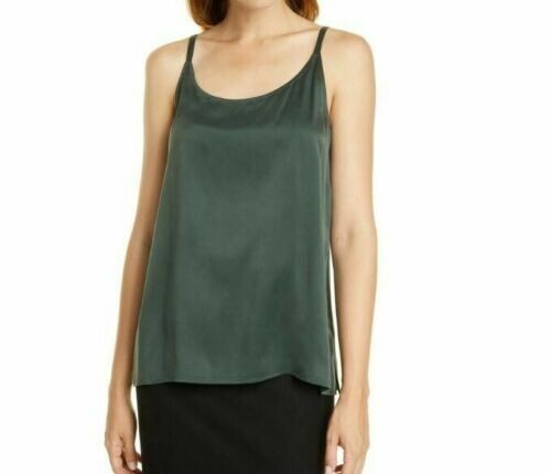 NWT 188 Eileen Fisher DEEP HAMLOCK Sandwashed Silk Charmeuse U Neck Tank Cami S