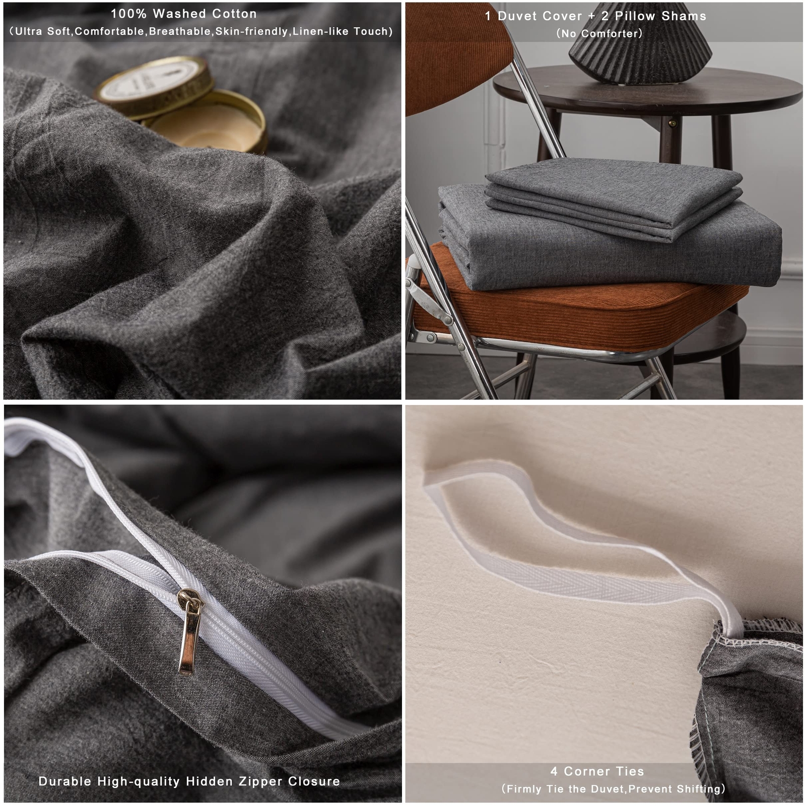 как выглядит Washed Cotton Duvet Cover Full Ultra Soft 100 Cotton Solid Color Gray Duvet ... фото