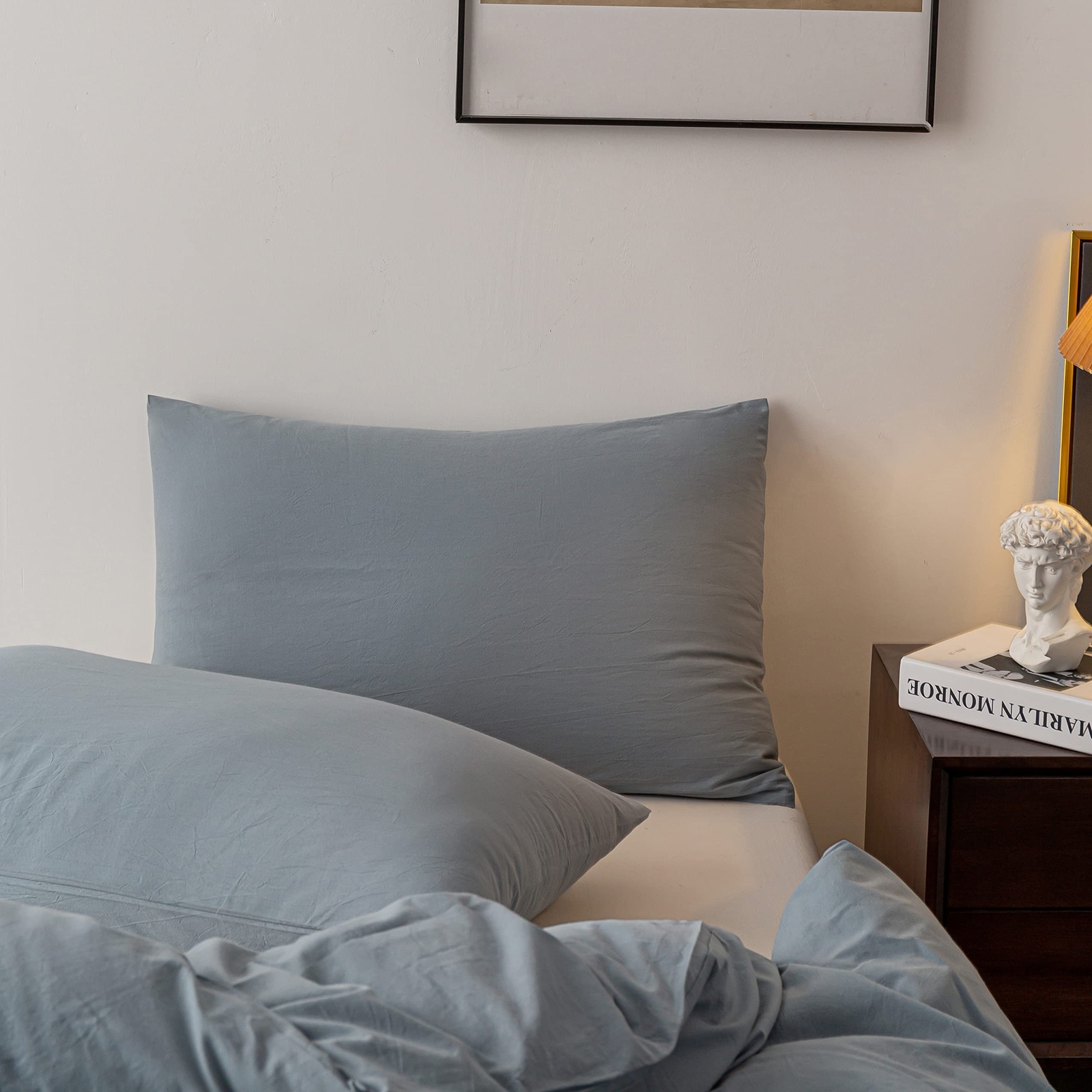 как выглядит Washed Cotton Duvet Cover Full Ultra Soft 100 Cotton Solid Color Grayish Blu... фото