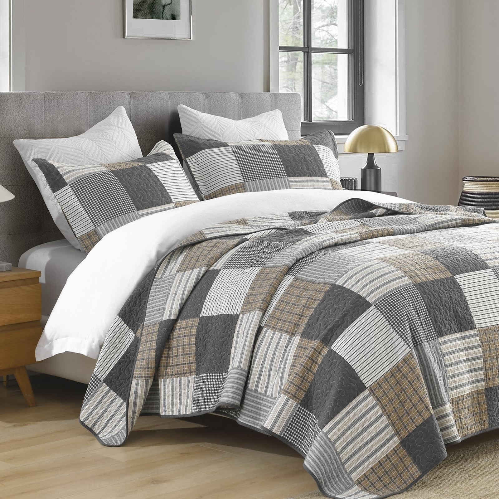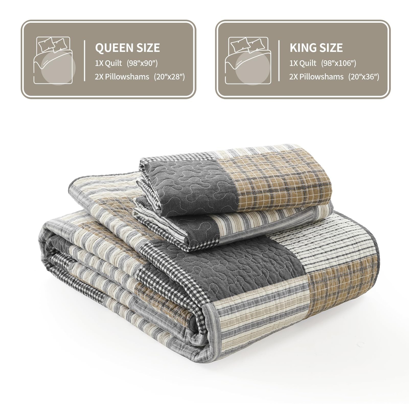 KALOOLA Plaid Quilts Queen Size, 100 Cotton Soft Lightweight Bedding Set 3 P...