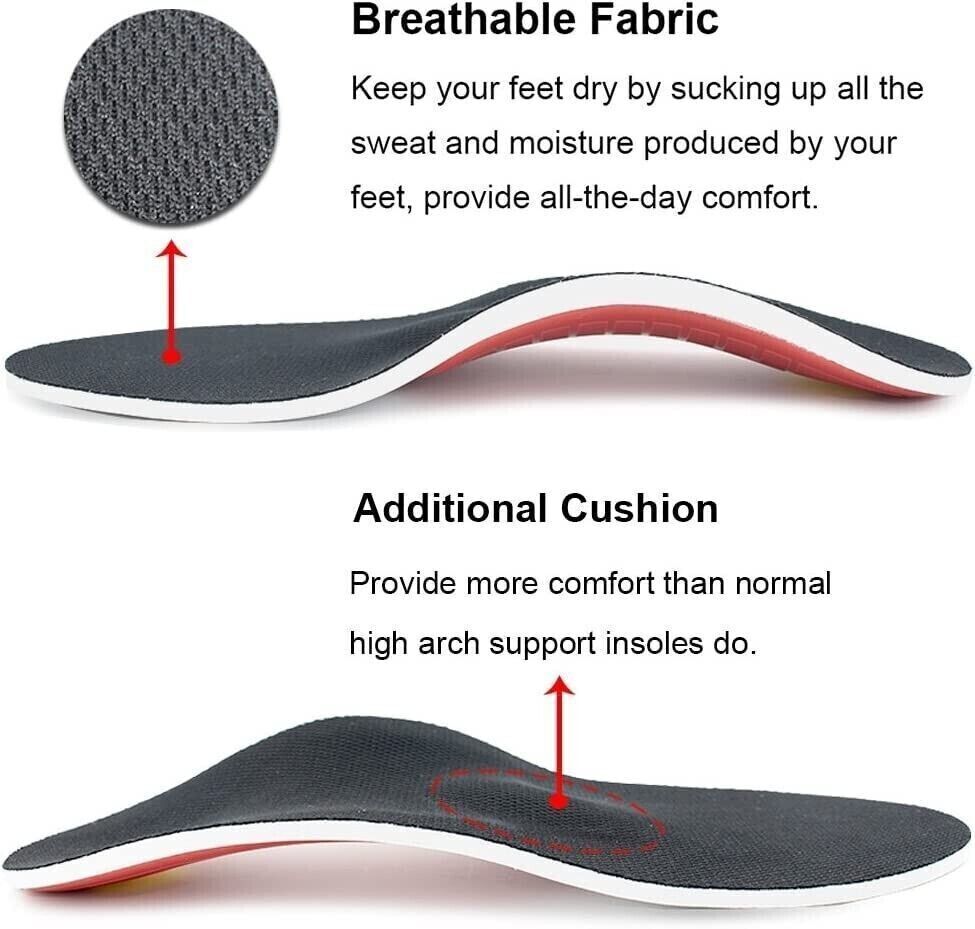 High Arch Support for Plantar Fasciitis Orthotic Shoe Insoles Inserts Flat Feet