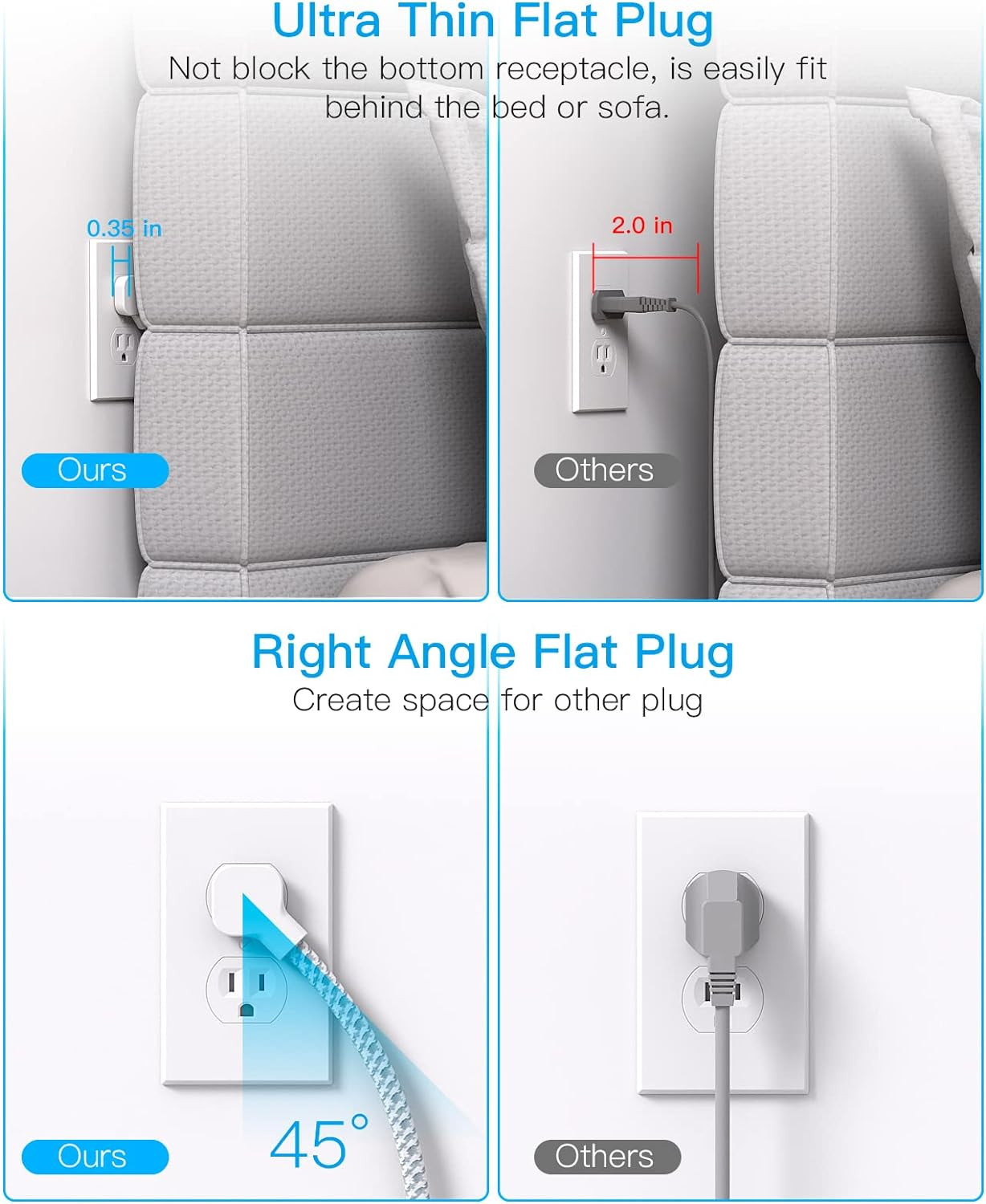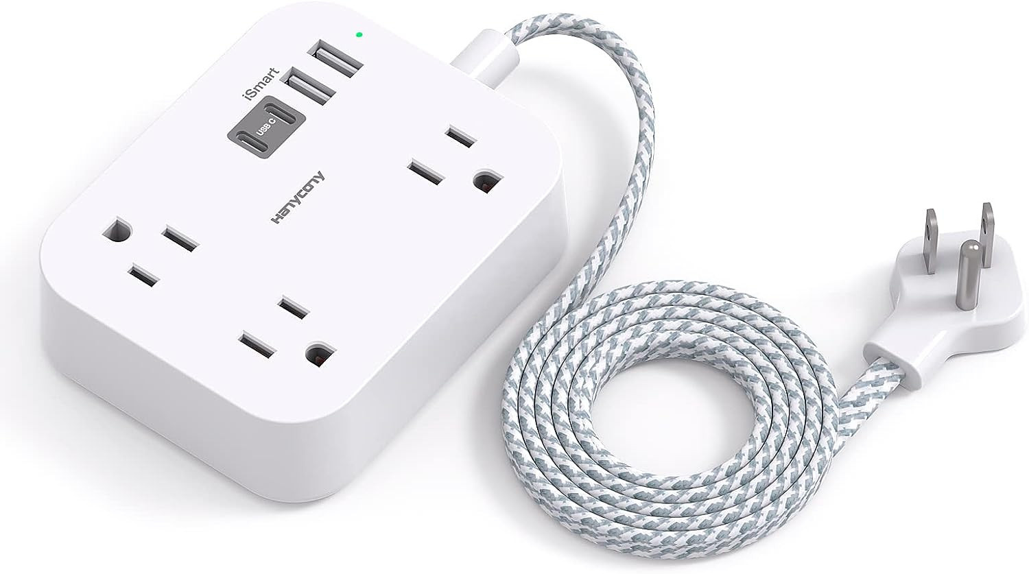 Power Strip Plug Extension Cord 3 Outlets, 4 USB Ports 2Usb C , 5 Ft Thin Flat P