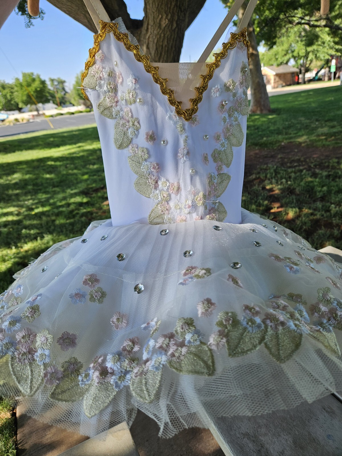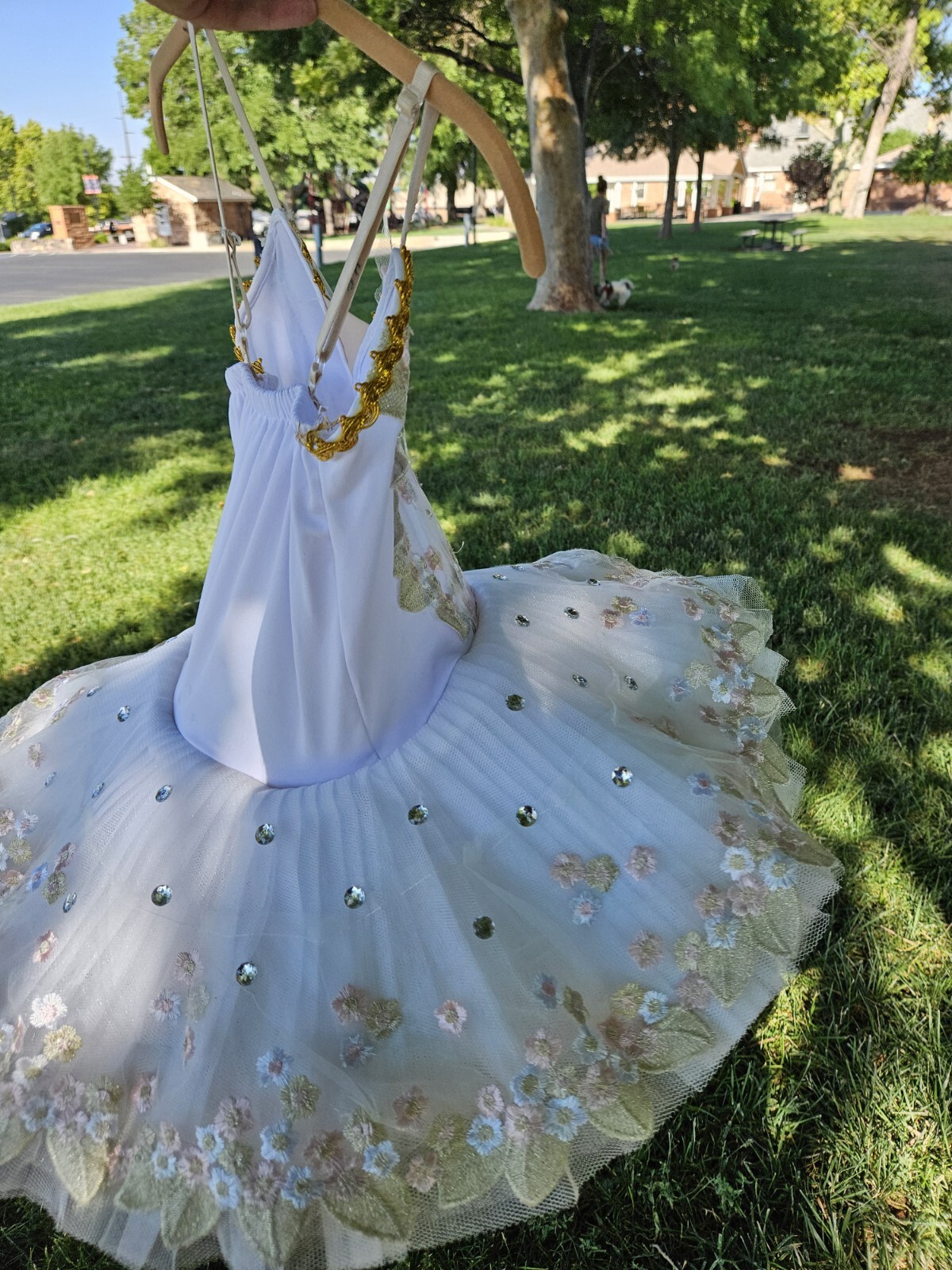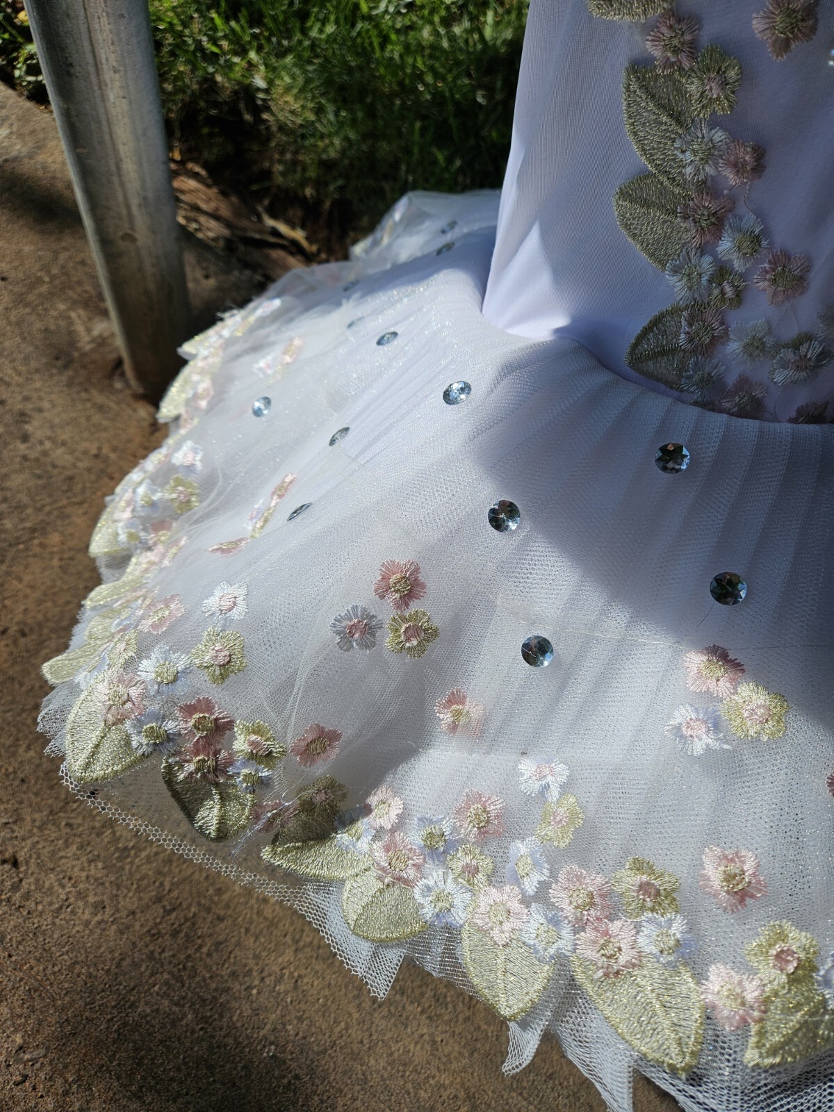 Girls Sz 6 7 8 Dance Ballet Tutu Leotard Dance Pancake Dancewear White