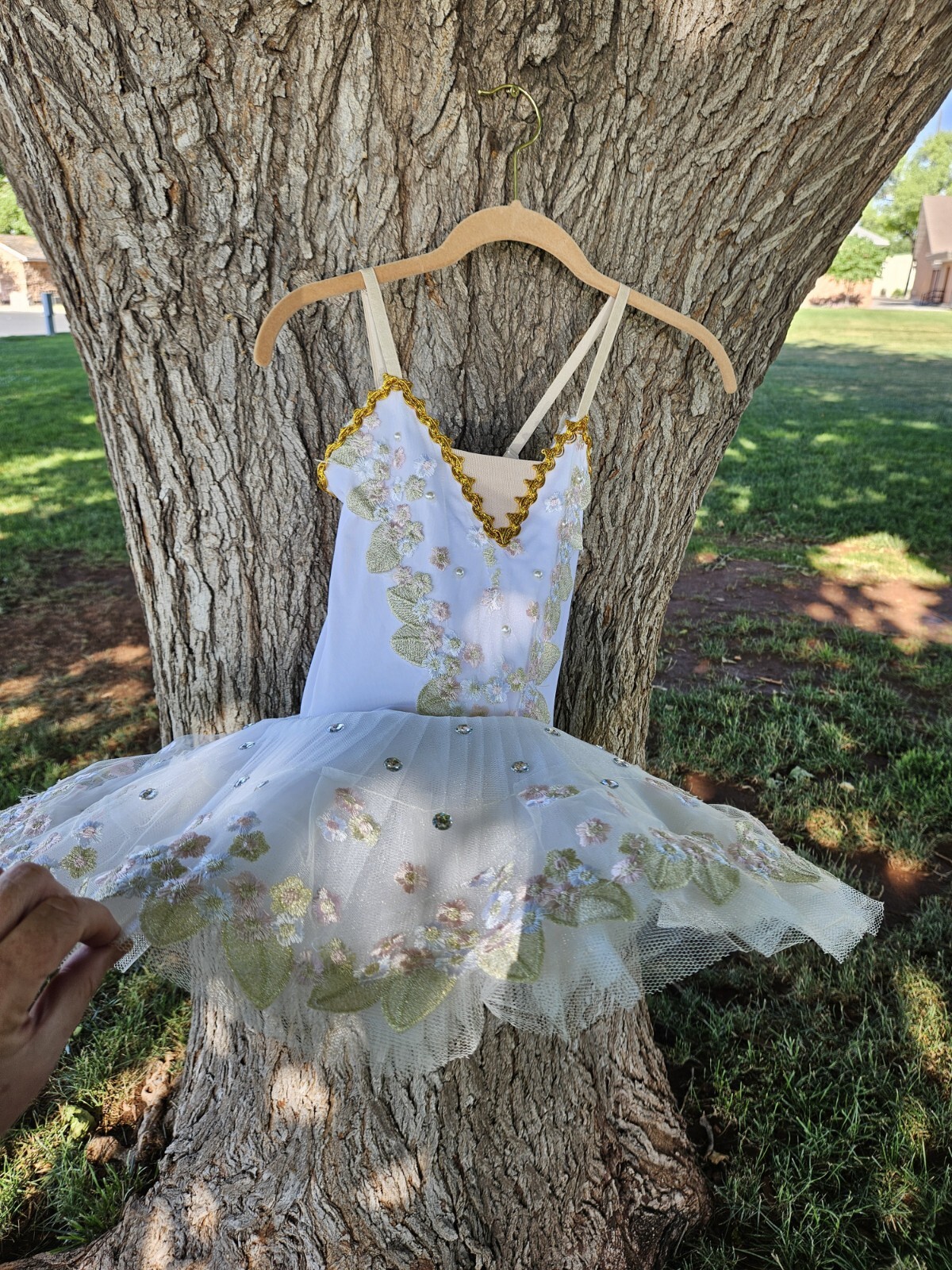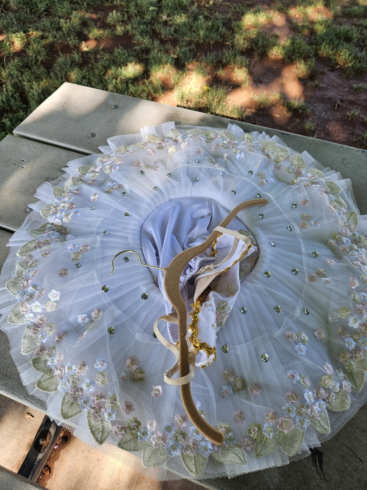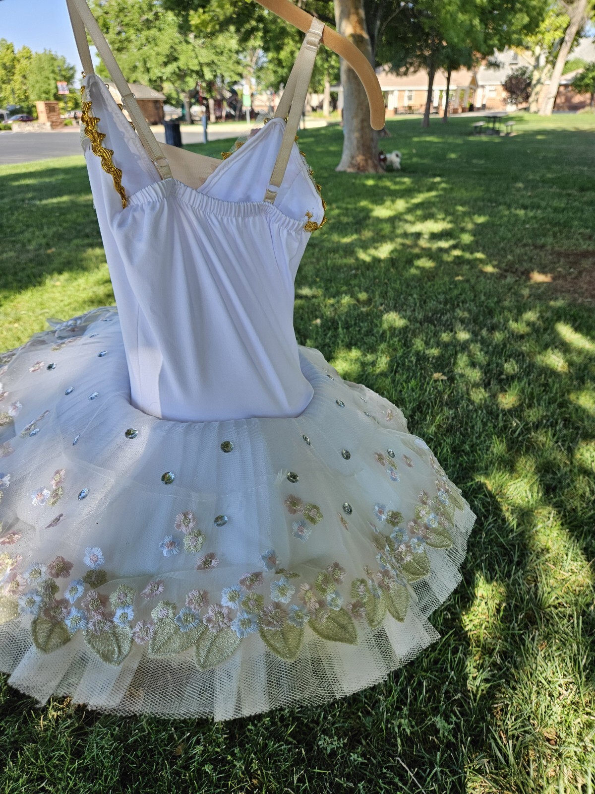 Girls Sz 6 7 8 Dance Ballet Tutu Leotard Dance Pancake Dancewear White