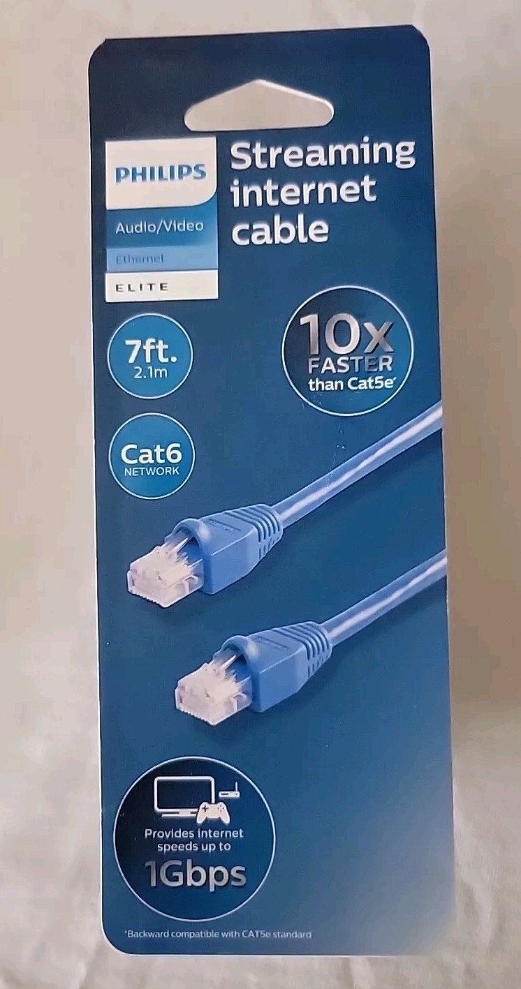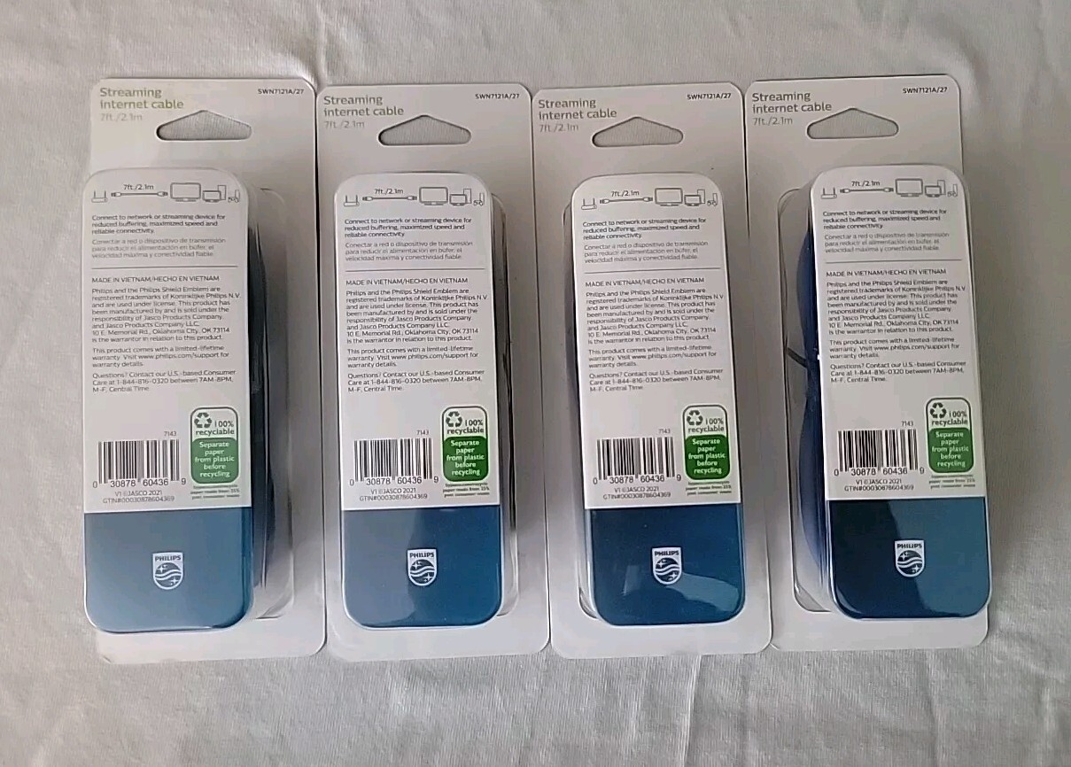 Lot of 4 Philips Elite Cat6 Streaming Internet Cable 7ft Ethernet Blue SWN7121A