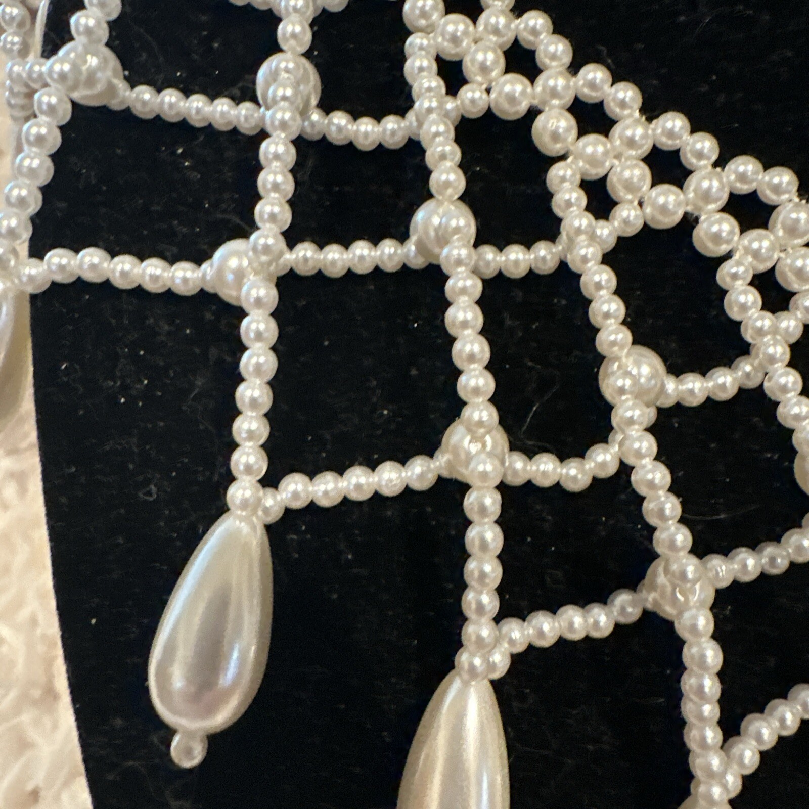 как выглядит VINTAGE Japan White Faux Pearl BEAD BEADED COLLAR Seed Beads фото
