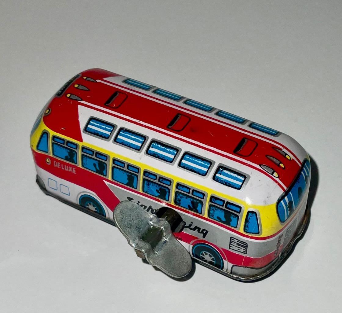 Vintage Tin Toy wind up sight seeing bus JAPAN works