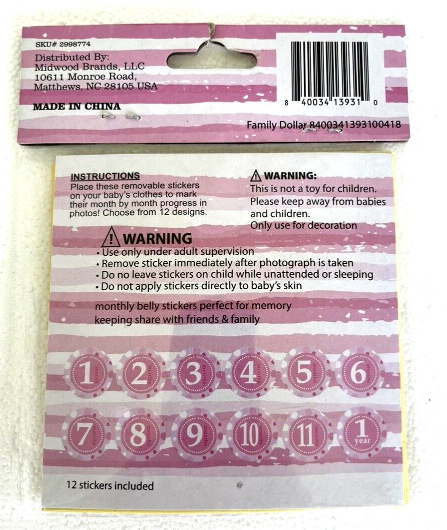как выглядит Babys First Year Belly Stickers 1-12 Months Baby Girl Pink - New фото