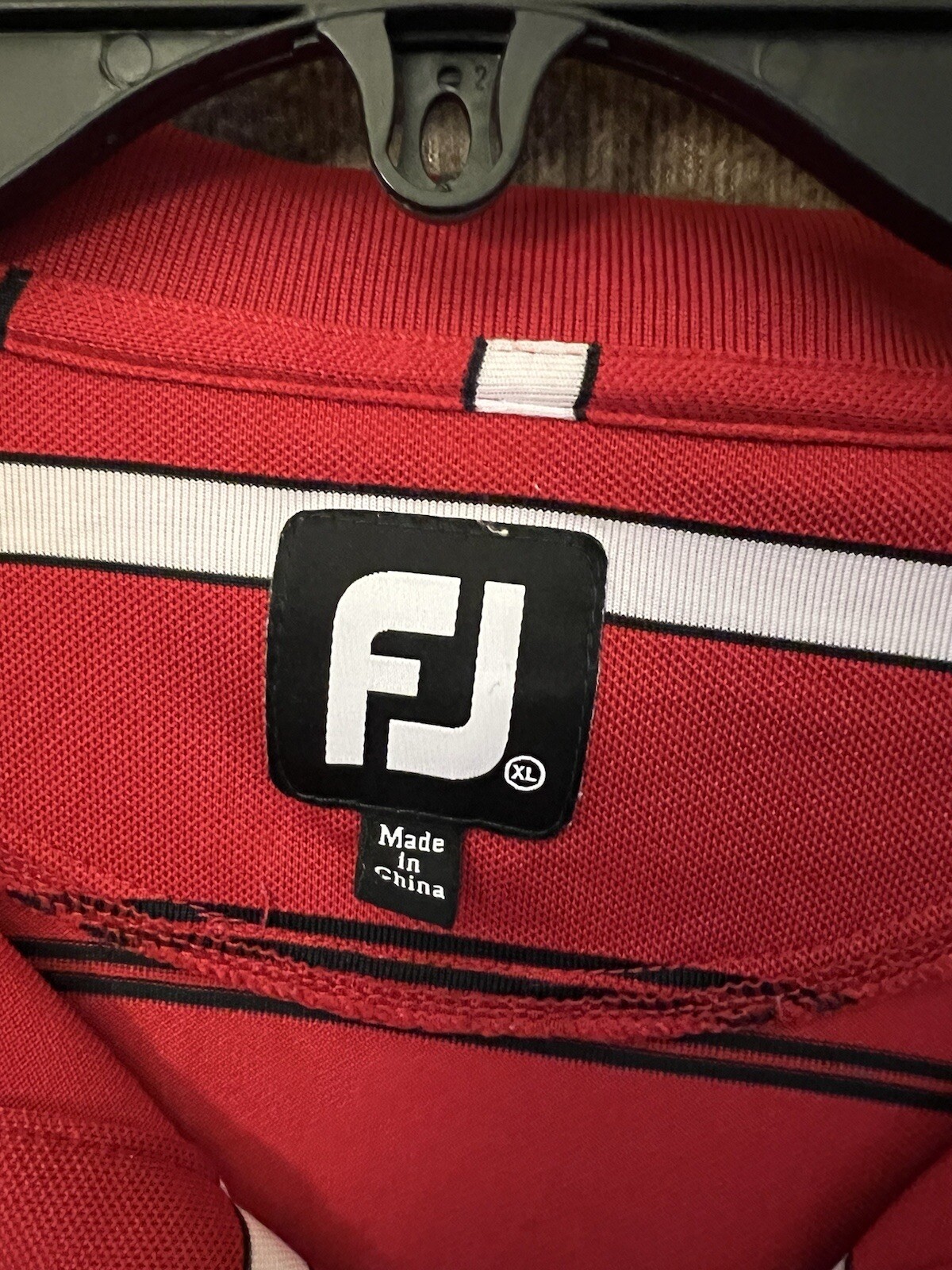 как выглядит FootJoy Polo Shirt Mens XL Red White Striped Golf Performance Casual Outdoors фото