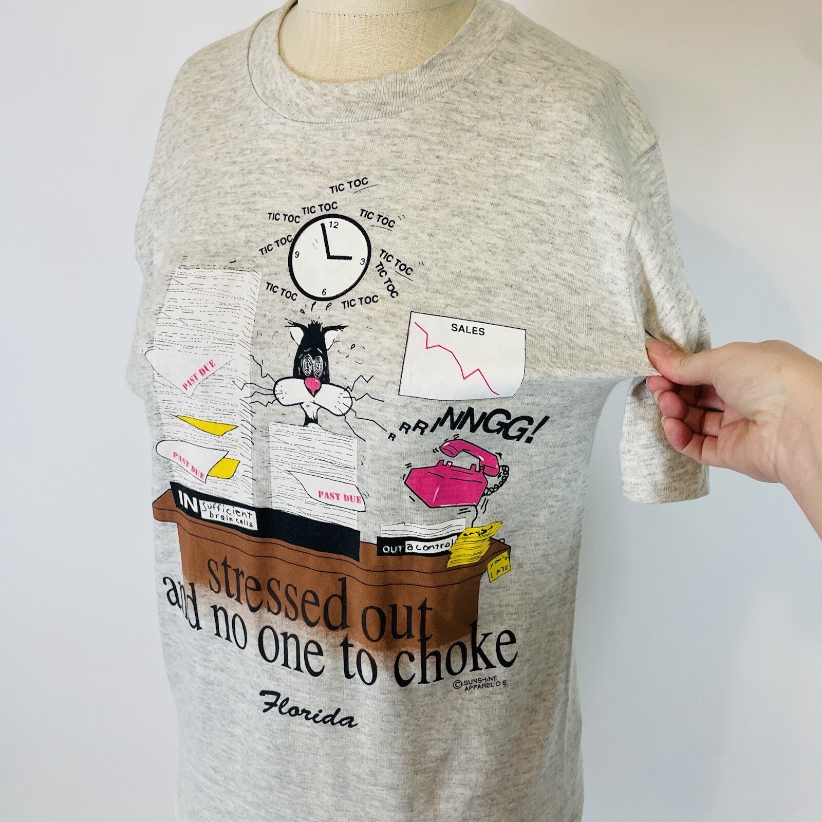 Vintage 90s Stressed Out Choke Gray T-Shirt Shirt Medium Unisex Single Stitch